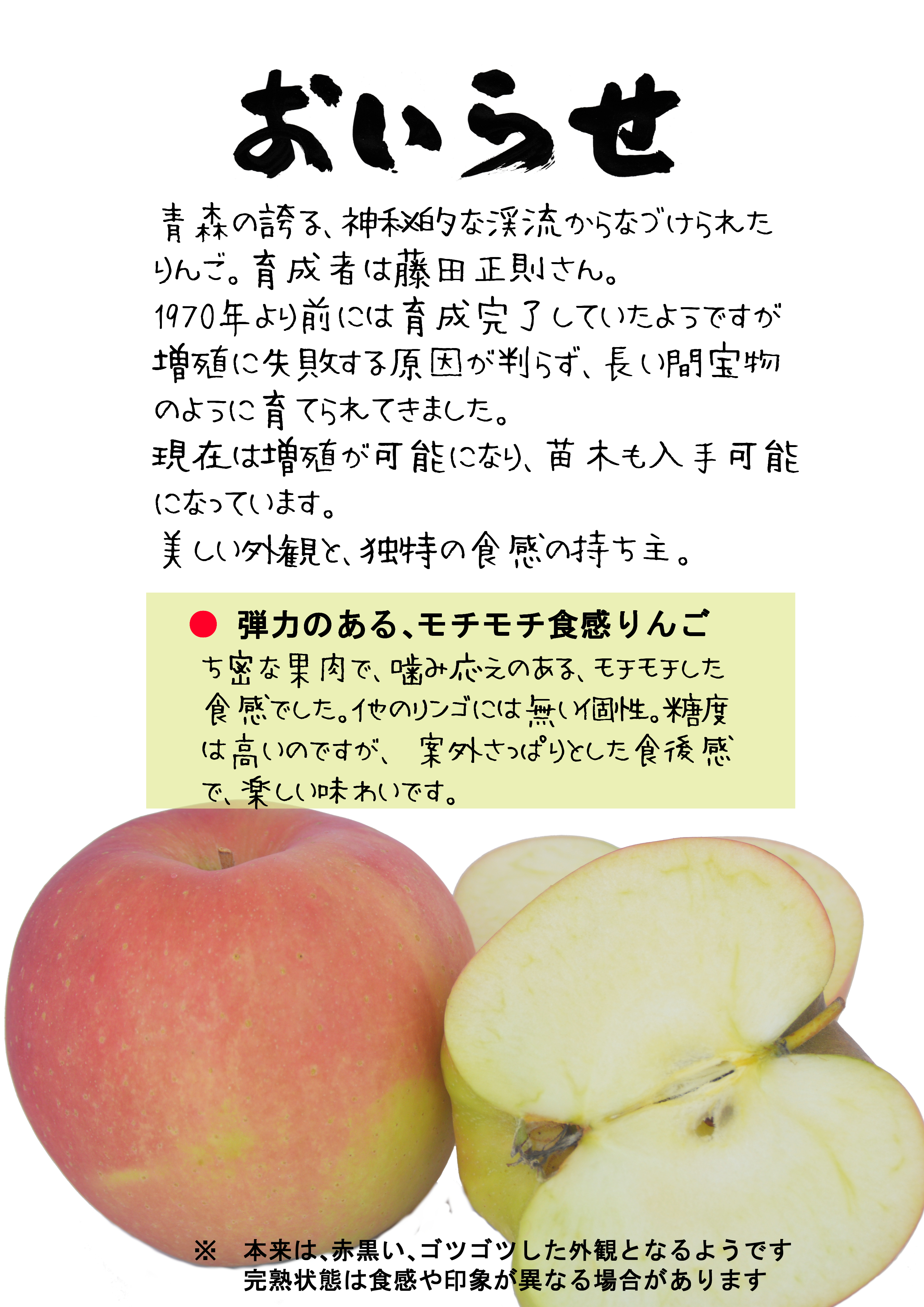 「青森県のりんご」杉山芬/雍 共著 北の街社 に、栽培に関わった赤石りんご園さんと、藤田正則氏のコメントが残っています。