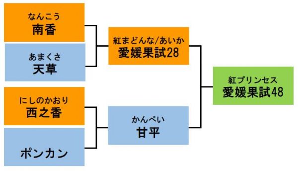 そのためか、「愛媛果試第48号」の流通名「紅プリンセス」は、愛媛県の登録商標(2020/04/09)。