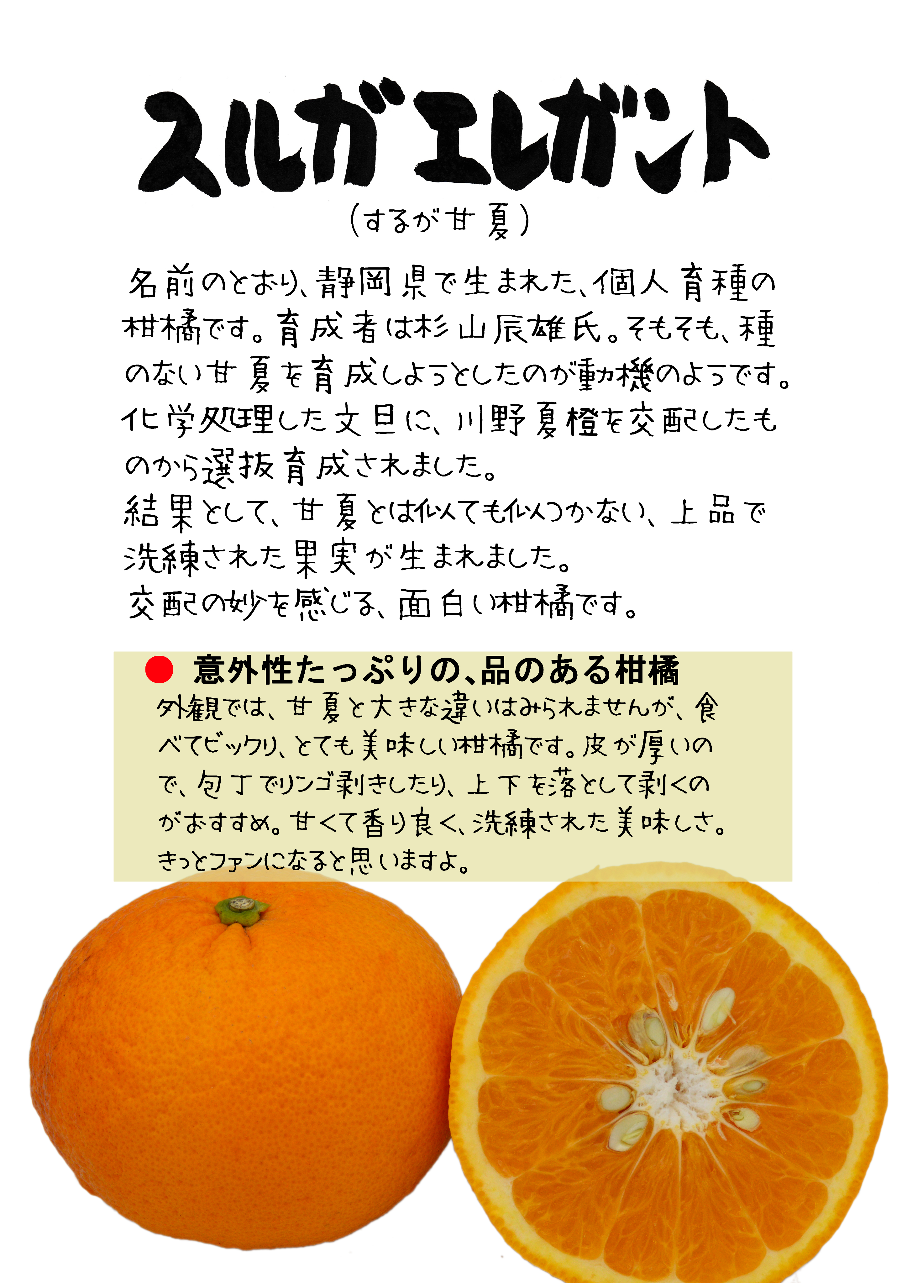 するが甘夏では登録がなく、「スルガエレガント」名で商標登録されています。
