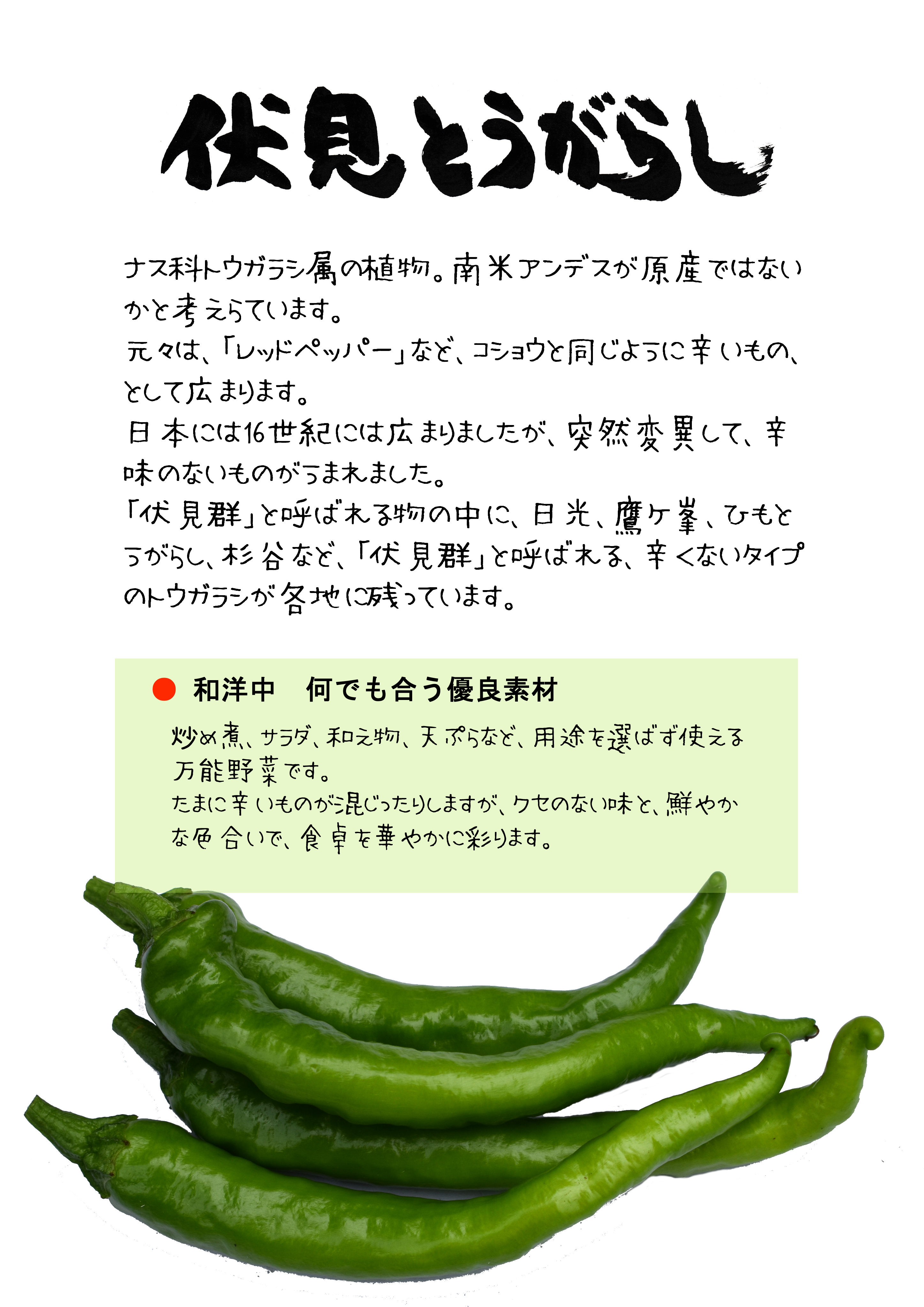 【 甘長トウガラシの類と伏見とうがらしについて 】