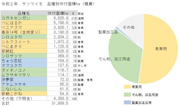 その中でも、「べにはるか」は全栽培面積の約2割ほどを占めていて、堂々の1位となりました。