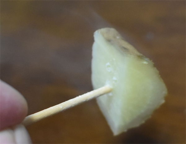 皮周辺から、何かの匂いが感じられます。サツマイモとは異質なものです。