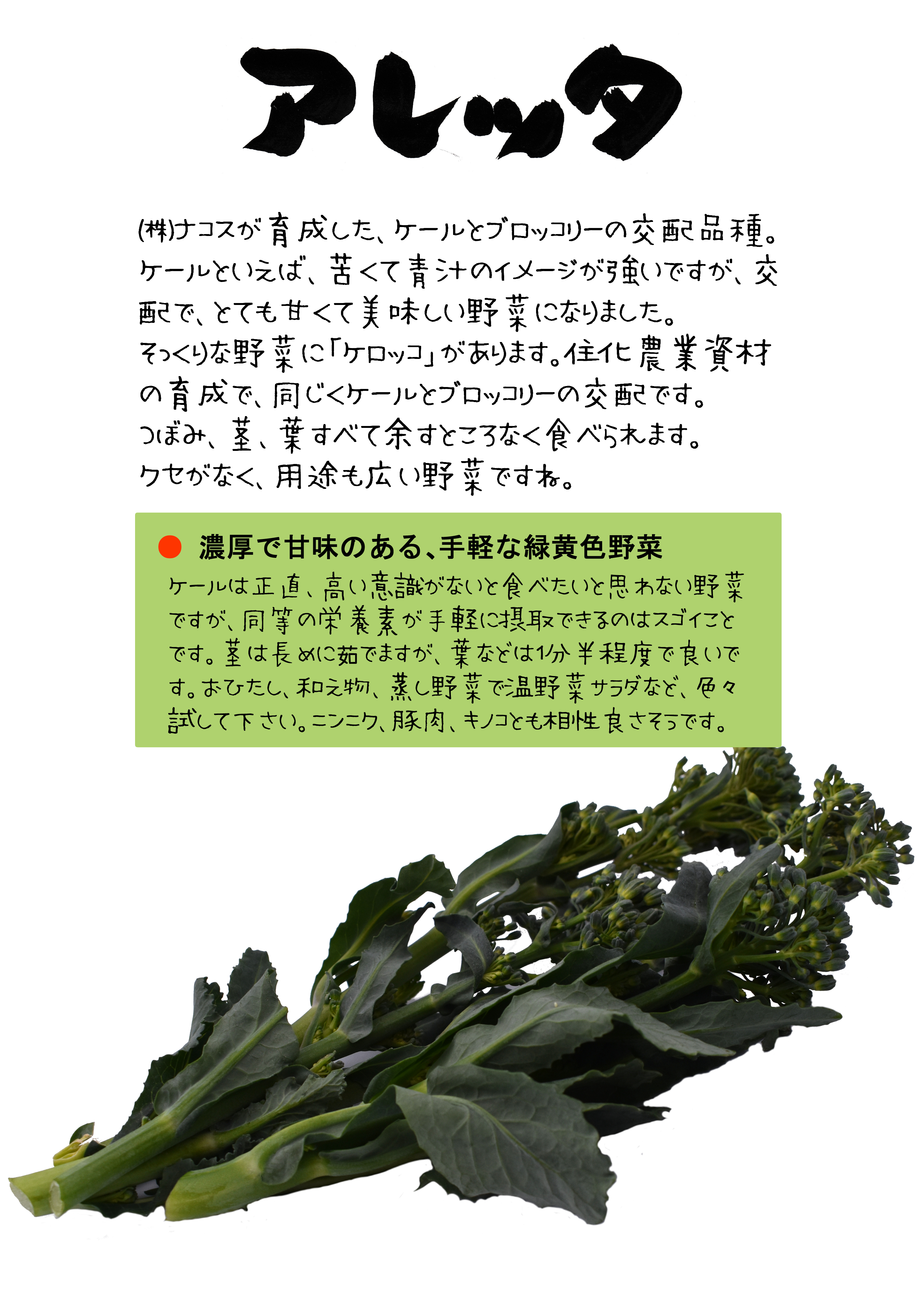 株式会社ナコスが育成した、ケールとブロッコリーの交配品種。