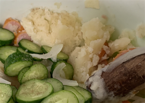 生き残った貴重なジャガイモを、ポテサラにします。