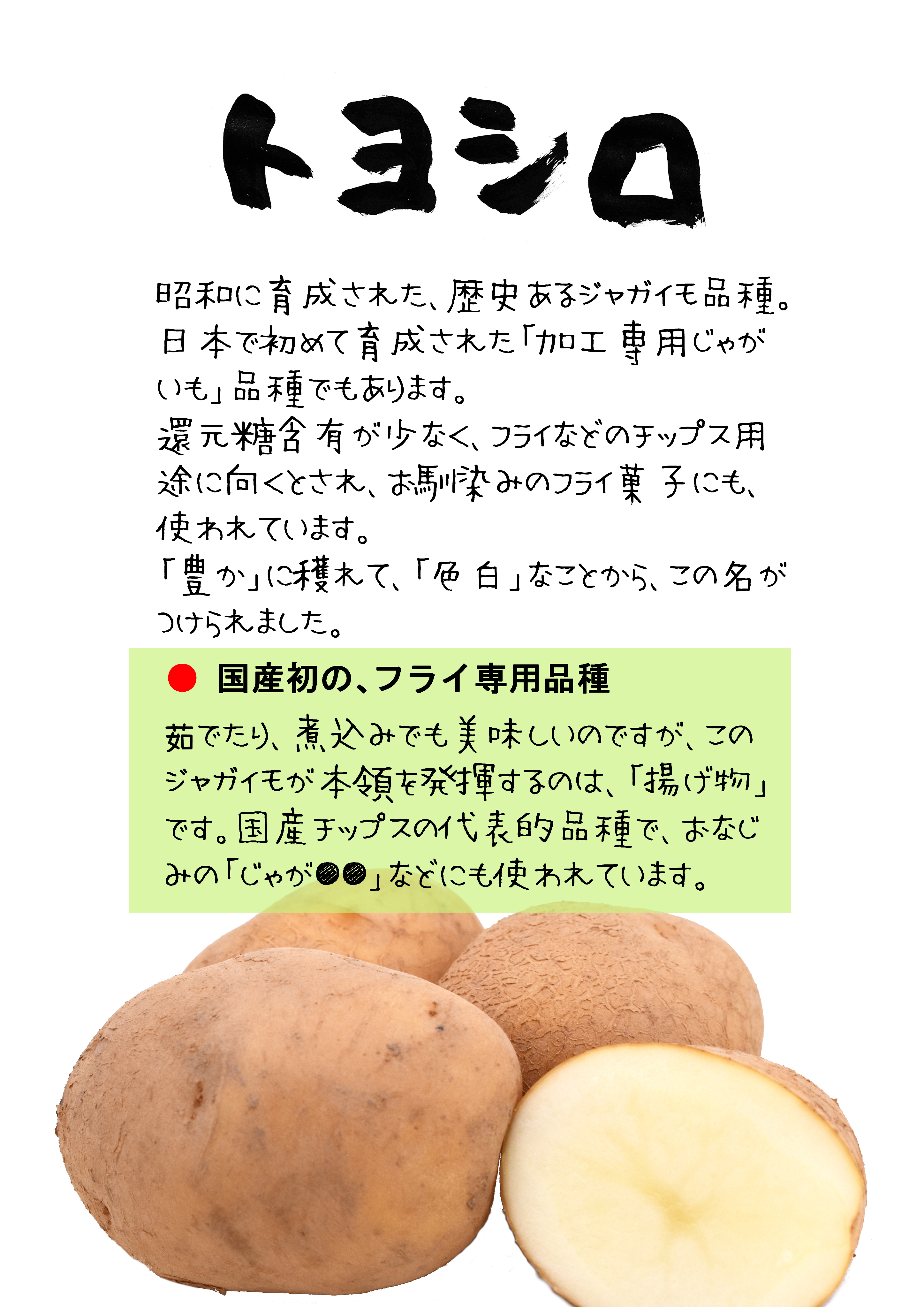 日本初の、加工専用ジャガイモ品種として育成されています。