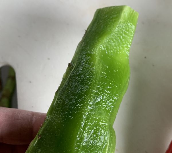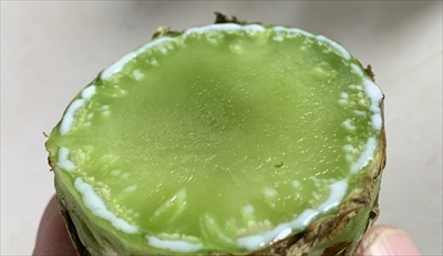 皮むきすると、濃い目のエメラルド色。
