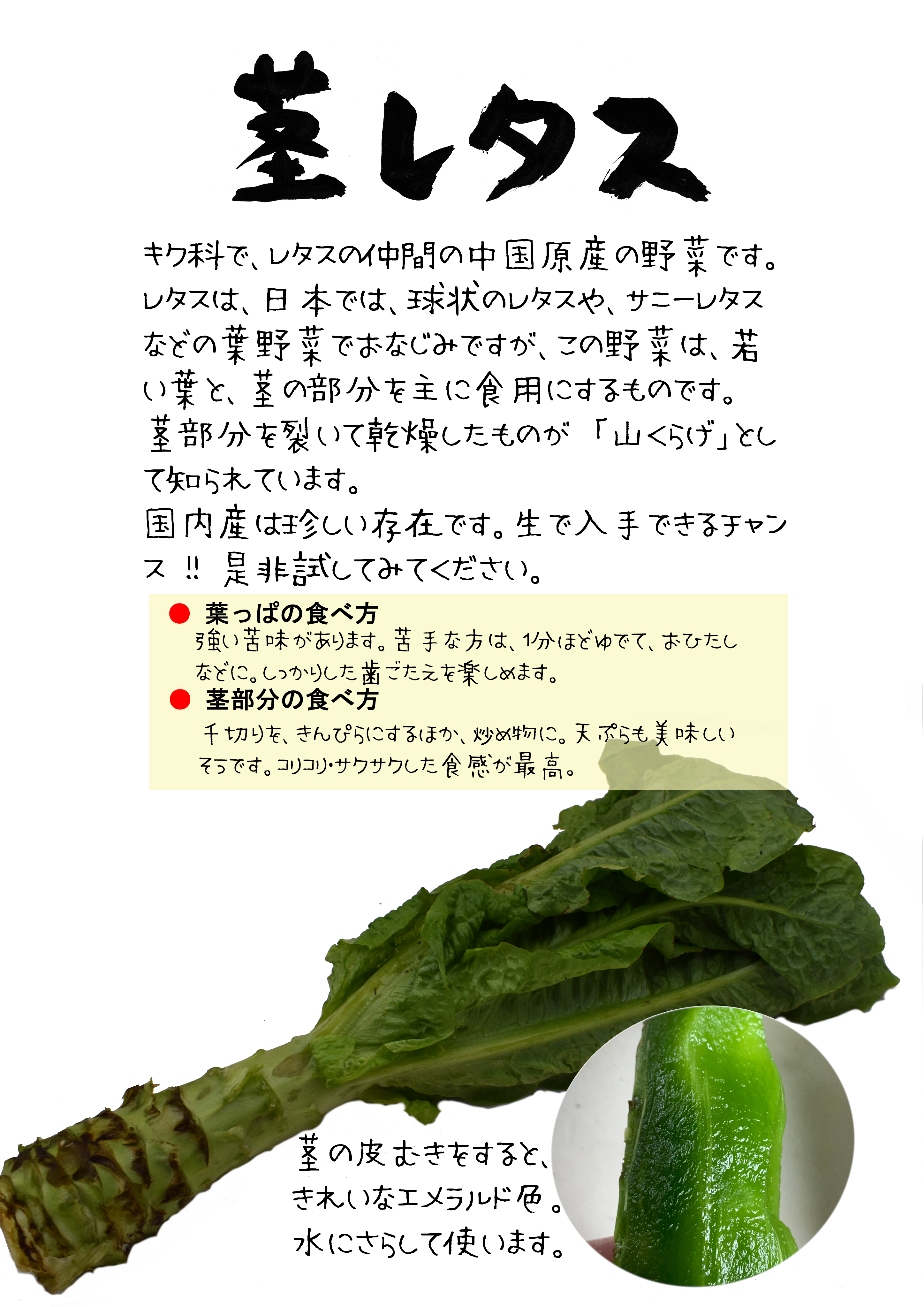 茎レタス 茎チシャ菜 ステムレタス チシャトウ ほか沢山の呼び名
