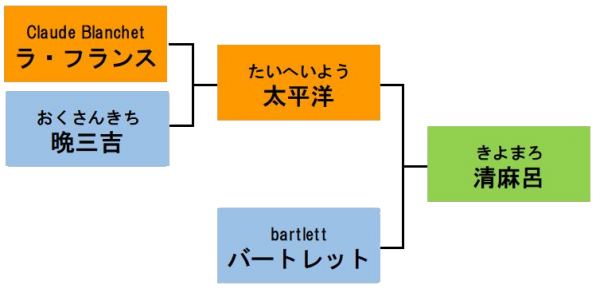 「太平洋」は、「ラ・フランス」を種子親として「晩三吉(おくさんきち)」との交雑から得られた品種。