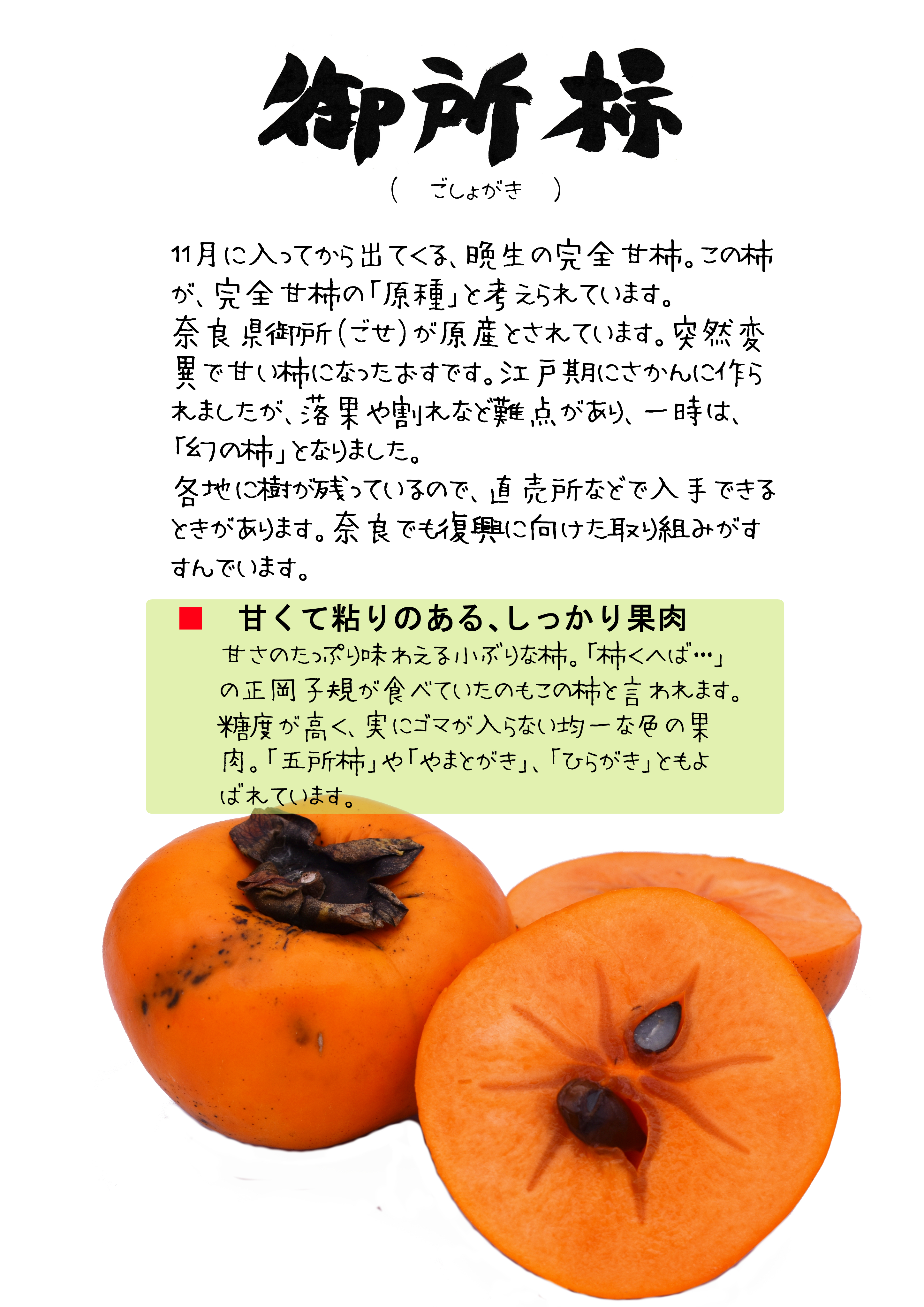 小型の完全甘柿。原種にあたるそうです。
