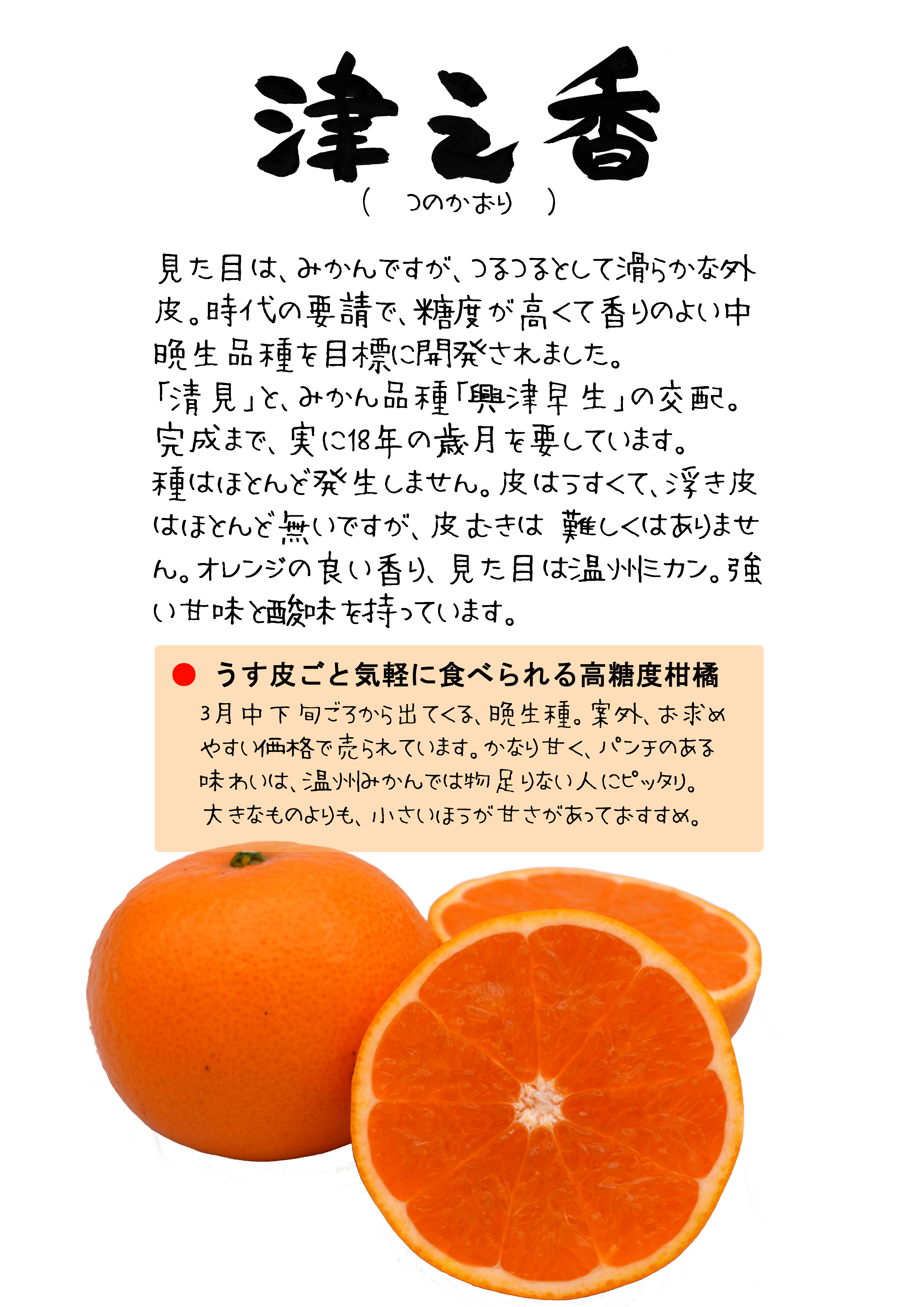 オレンジ系の香りがあって、糖度が高く、みかんとは、別の味わいですが、気軽に食べられて優秀な品質です。