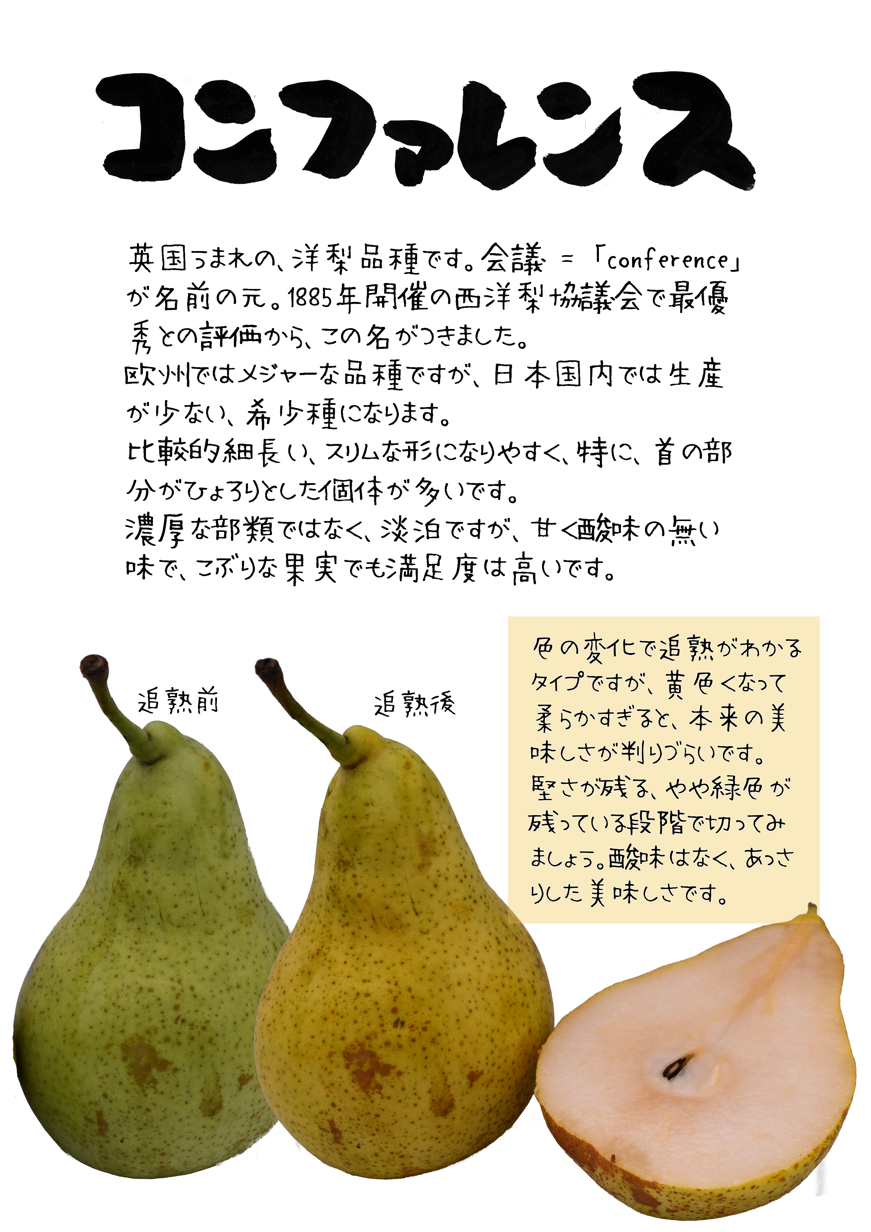 会議=conference が名前の元で、英国で1885年に開催された西洋梨協議会で最優秀だということで名付けられたとされます。