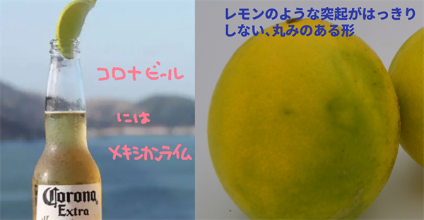 左は コロナビール 右は、タヒチライムの形状です