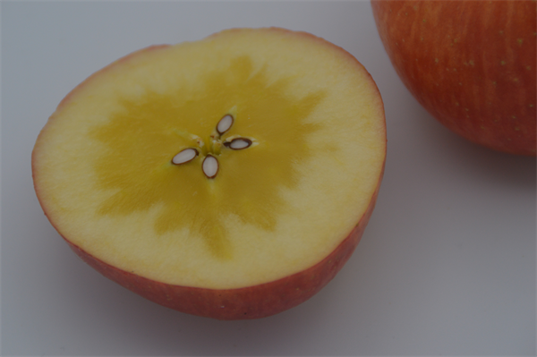 この品種は、「東光」の自然交雑実生で、果皮色は淡褐紅色で、「ふじ」より一回り小さく、果汁及び蜜入りが多く、少酸多甘型である。樹姿は中間型、樹の大きさ及び樹勢は中である。・・・果実の大きさは中で平均約270g、「東光」、「ふじ」より小さい。・・・果肉の色は黄、硬さは硬、きめは中、押傷のつき易さは中、蜜の多少は多、果汁の多少は極多、甘味は中(糖度14度前後)、酸味は弱、香気は多である。・・・「東光」と比較して、果形が異なること、果皮色が異なること、がくあが広く深いこと、果肉が硬いこと等で、「ふじ」と比較して、果実が小さいこと、果皮色が異なること、果梗が短く太いこと、成熟期が早いこと等で、「北斗」と比較して、果実が小さいこと、果皮色が異なること等で、「アンビシャス」と比較して、果皮色が異なること、果点が小さく密度が低いこと、蜜が多いこと等で区別性が認められる。