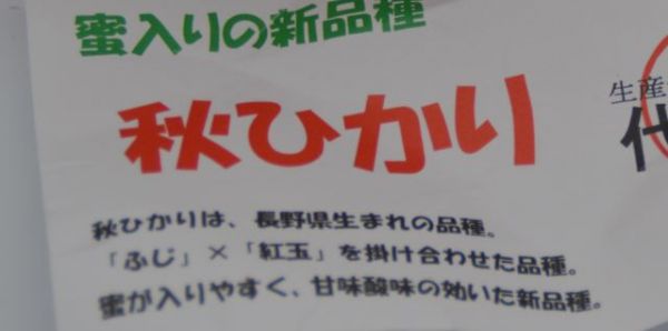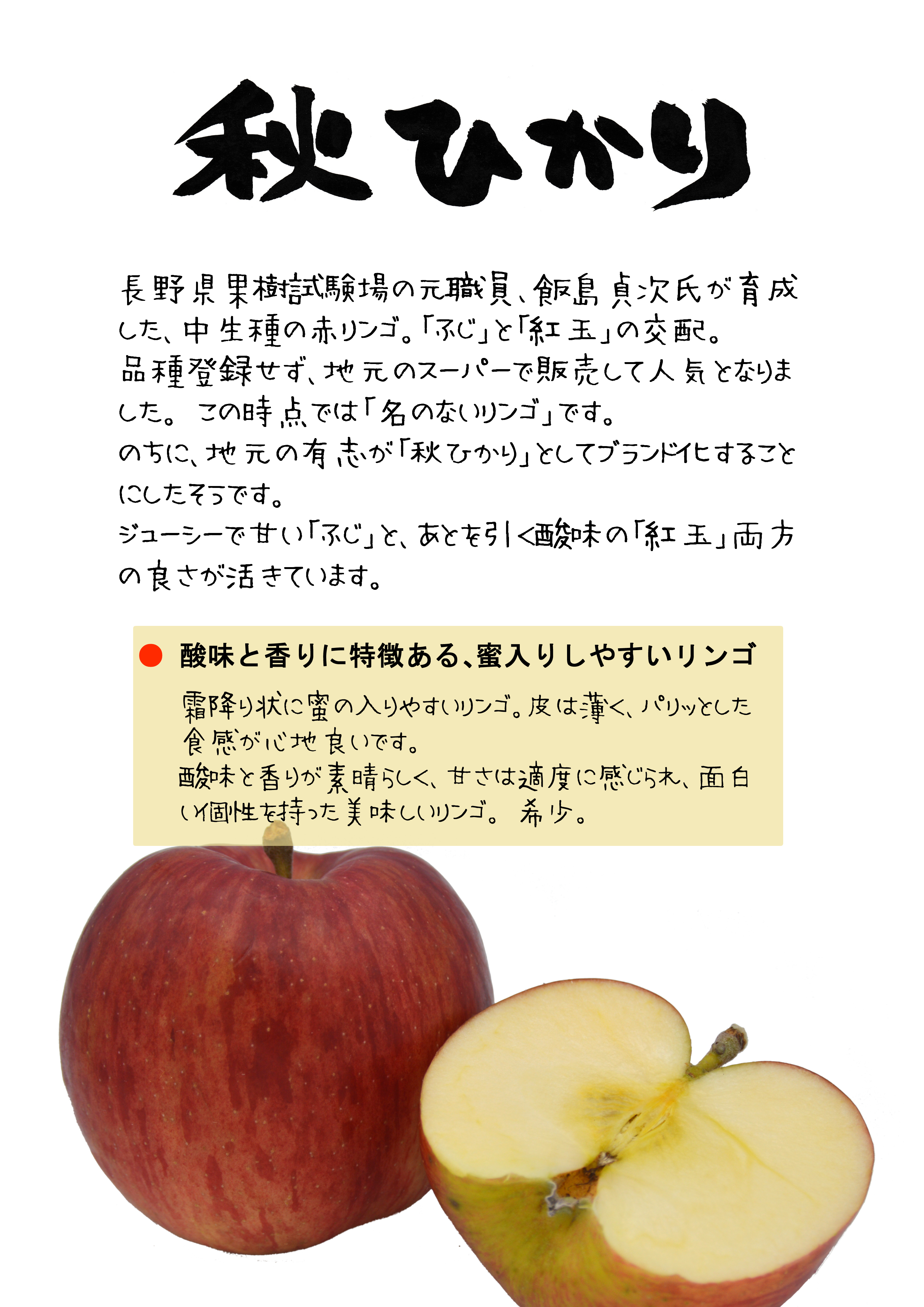 「秋ひかり」は、「ふじ」と「紅玉」を交配したもの。1990年代のようです。