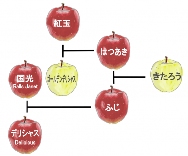 両親は赤リンゴですが、生まれたのは黄リンゴ。