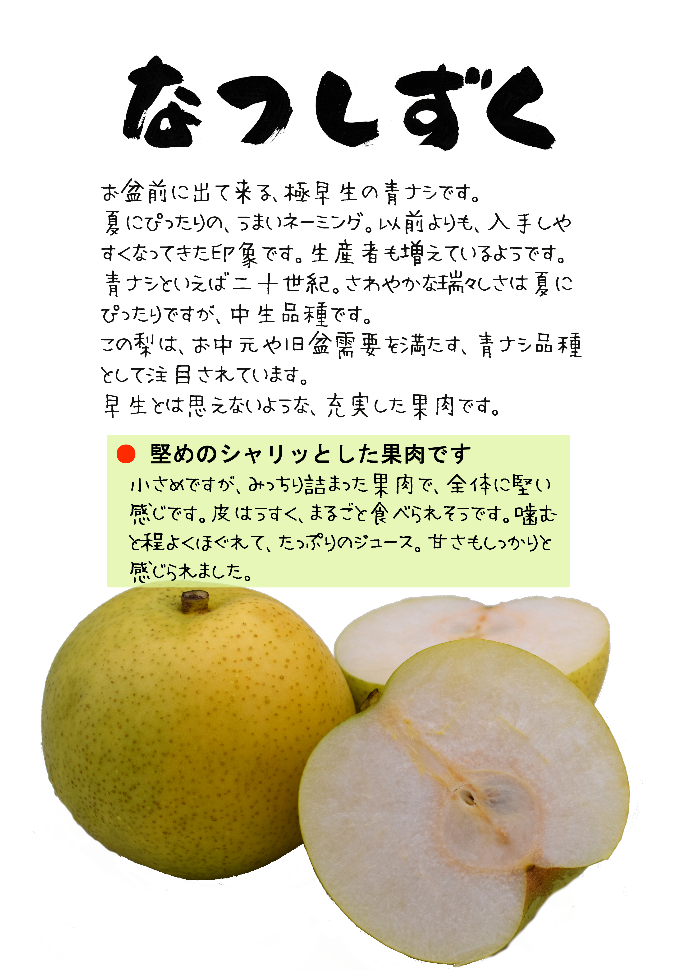名前は、「夏に採れるみずみずしいナシをイメージした」とのことです。