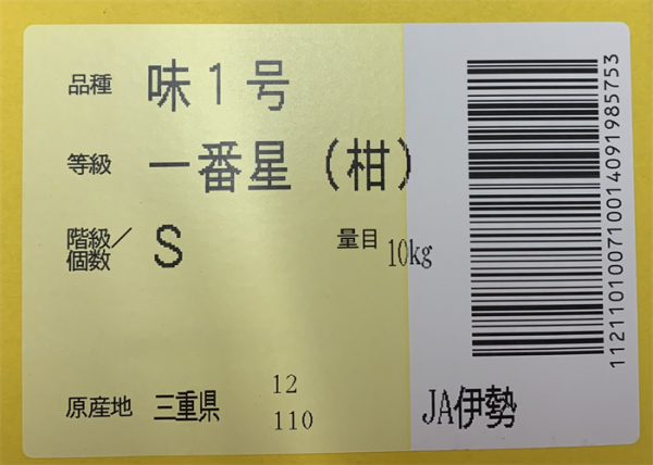 ブランドとして、外観がよく、糖度10以上、酸度1.1以下は「みえの一番星」の名前で出しているようです(JA伊勢 R5年9月時点)。