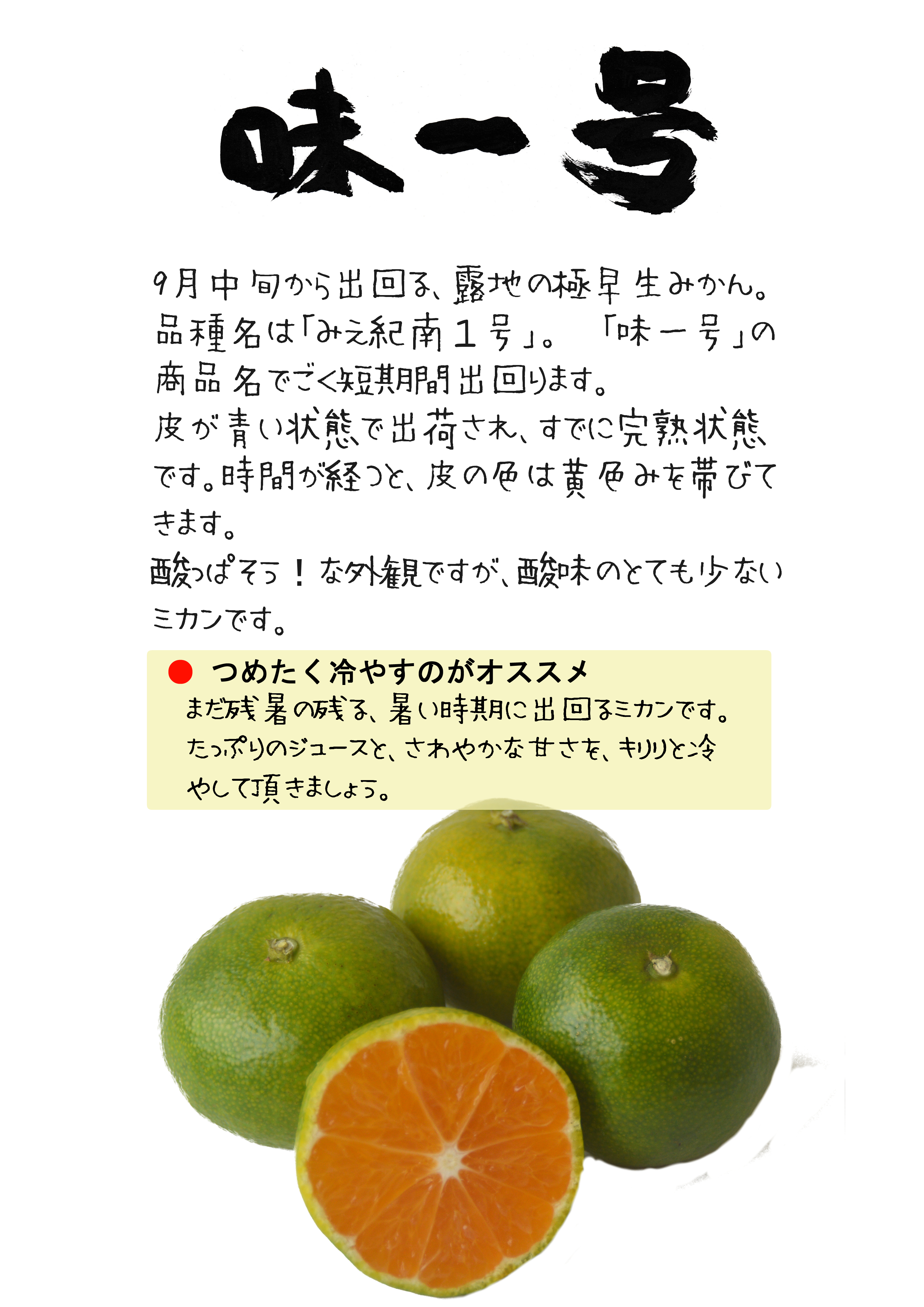 9月中旬から出てくる、超極早生の露地みかん。