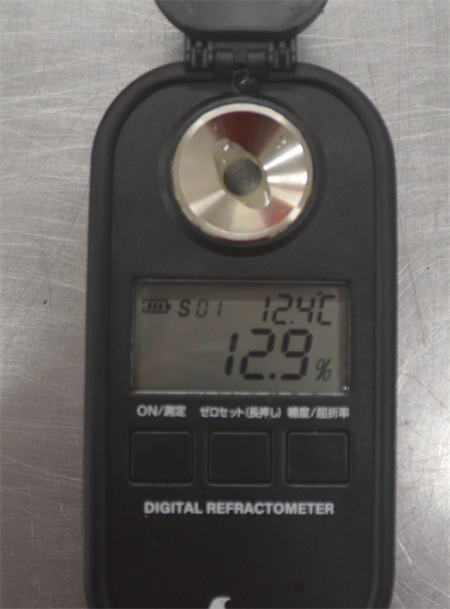 糖度を測ると12.9とさほどでもありません。