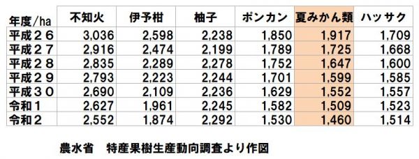 ハッサクとほぼ同じ栽培面積で推移しています。