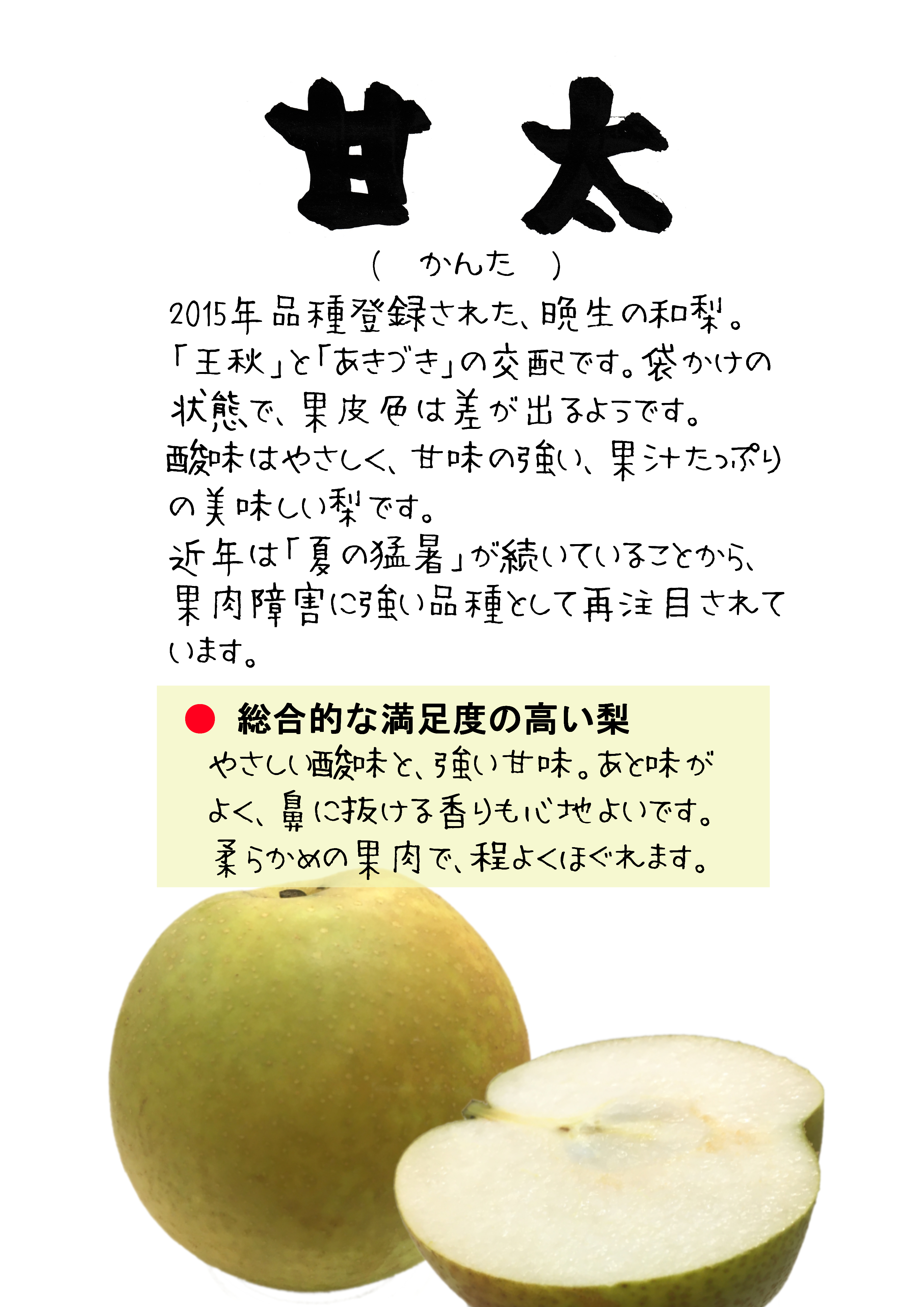 「甘太」は、「新高」に代わる 果肉障害が少ない品種として再度注目されそうです。