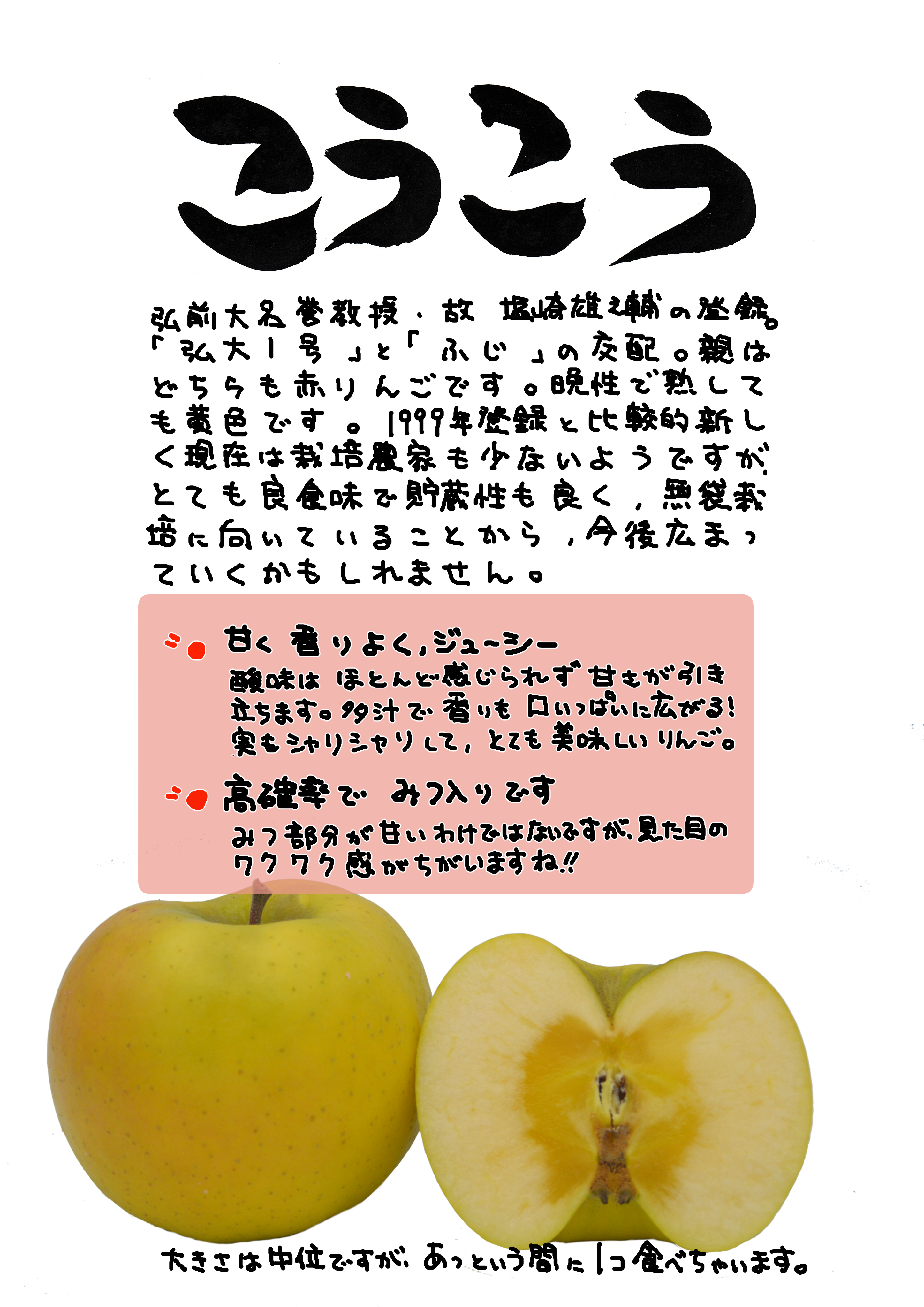 「弘大1号」は、弘前大学の付属農場で生まれた、第一号の品種。
