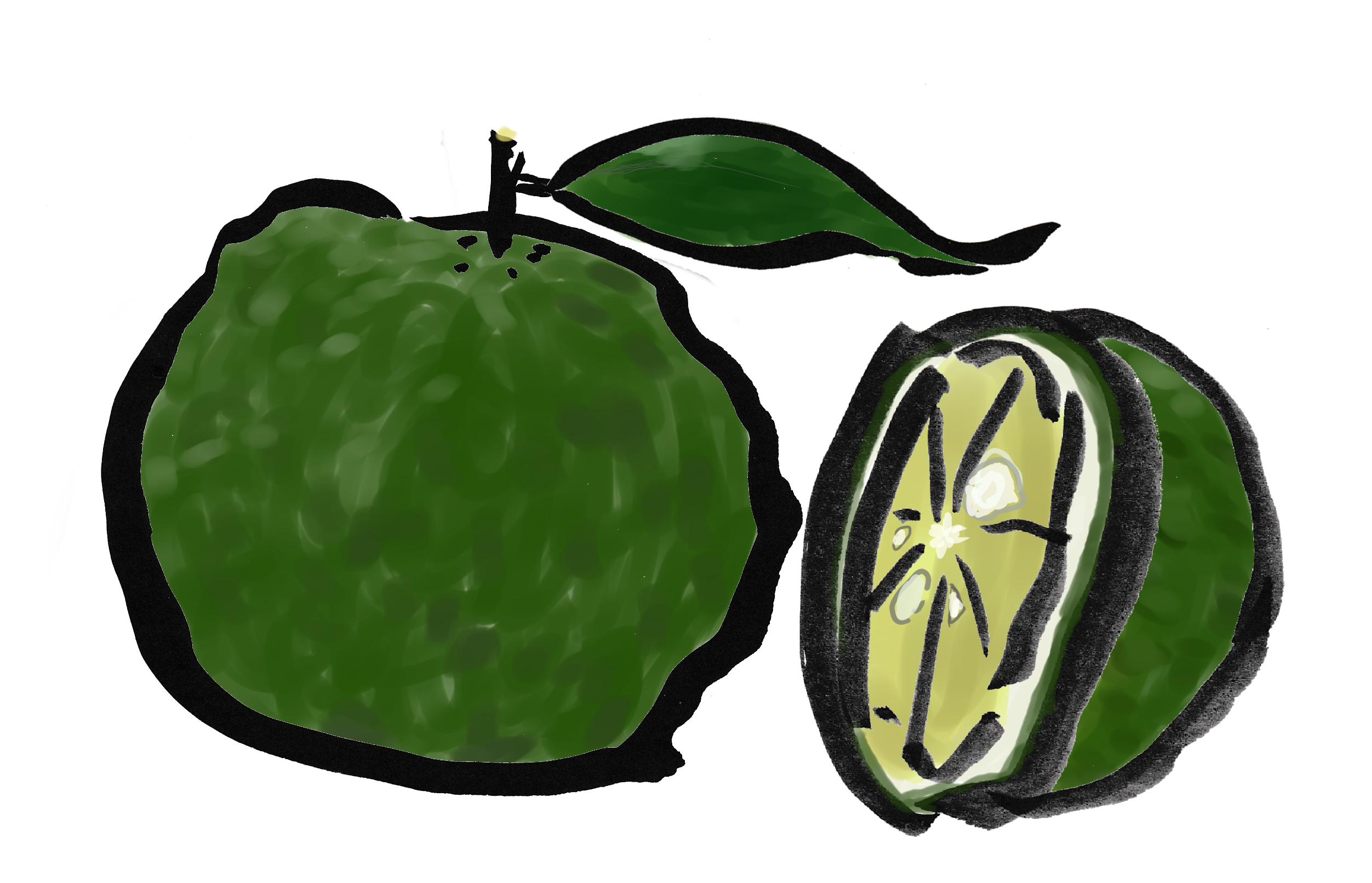 イラストも必要なシーンがあるのかなと思って制作しています。臆さずみなさんも描いてみてください。筆で輪郭をかき、デジタルで彩色。小さい青ユズのイメージです。