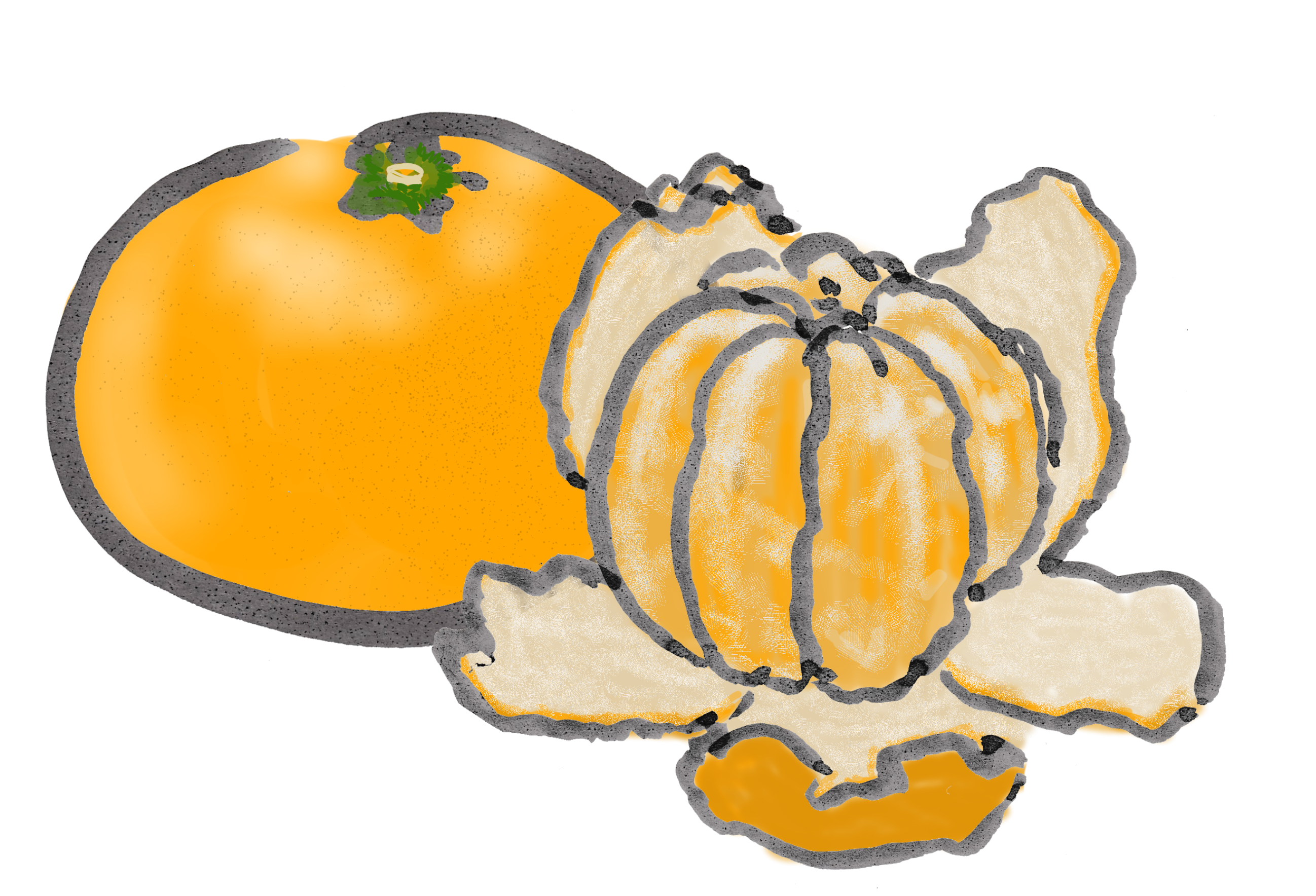光沢あるみかんと剥きみかんの合成。バラもあります。イラストみかんで検索。