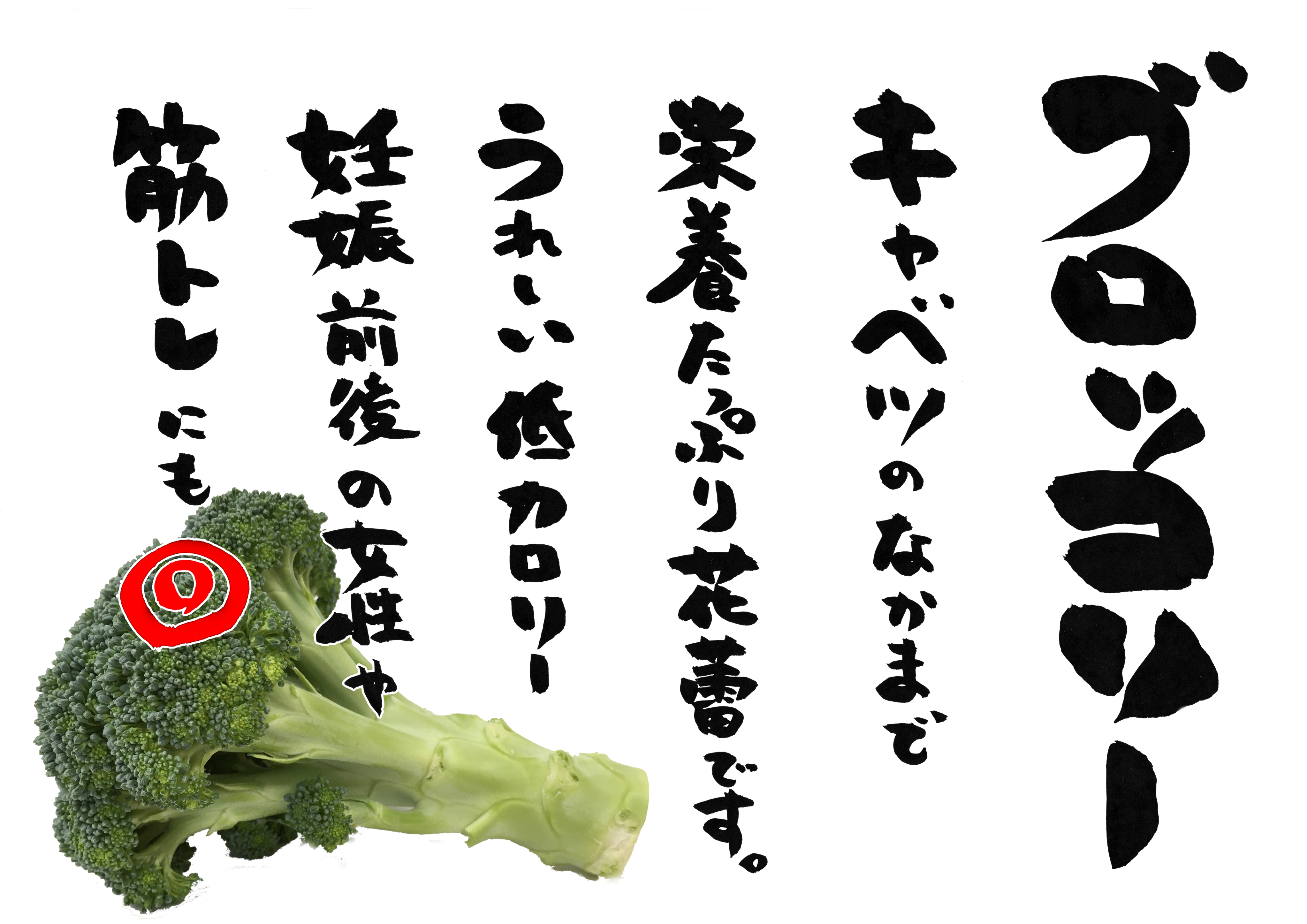おなじみの野菜。短くすることは拘束が多くて難しいですね。一瞬で見て感じていただけることが良い点です。カラダによさそう!に絞りました。