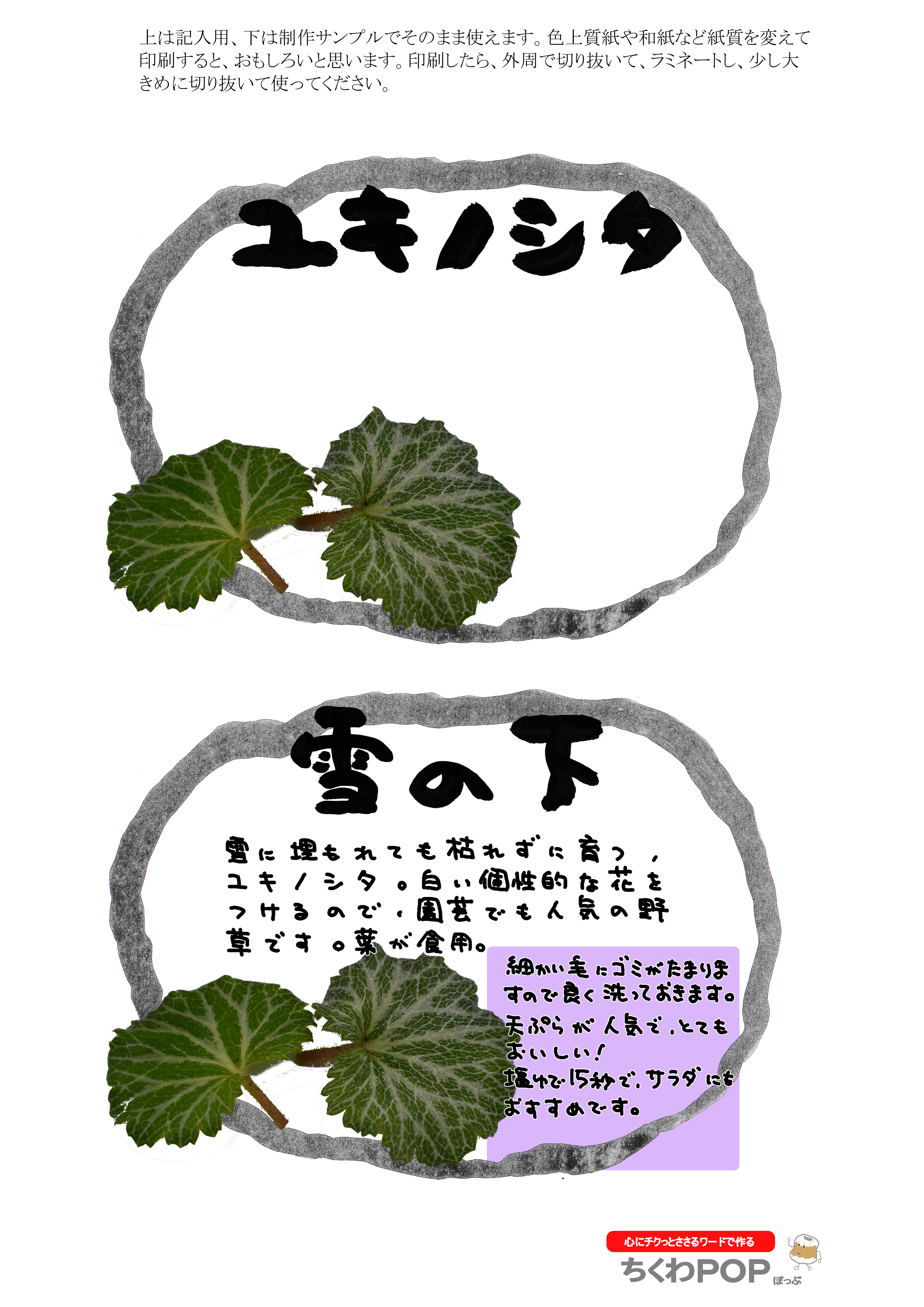目的は「自作応援」です。さっそく自分でかいてみてください。商品説明は、品種名で別のポップを検索すると出てきますので参考にしてください。