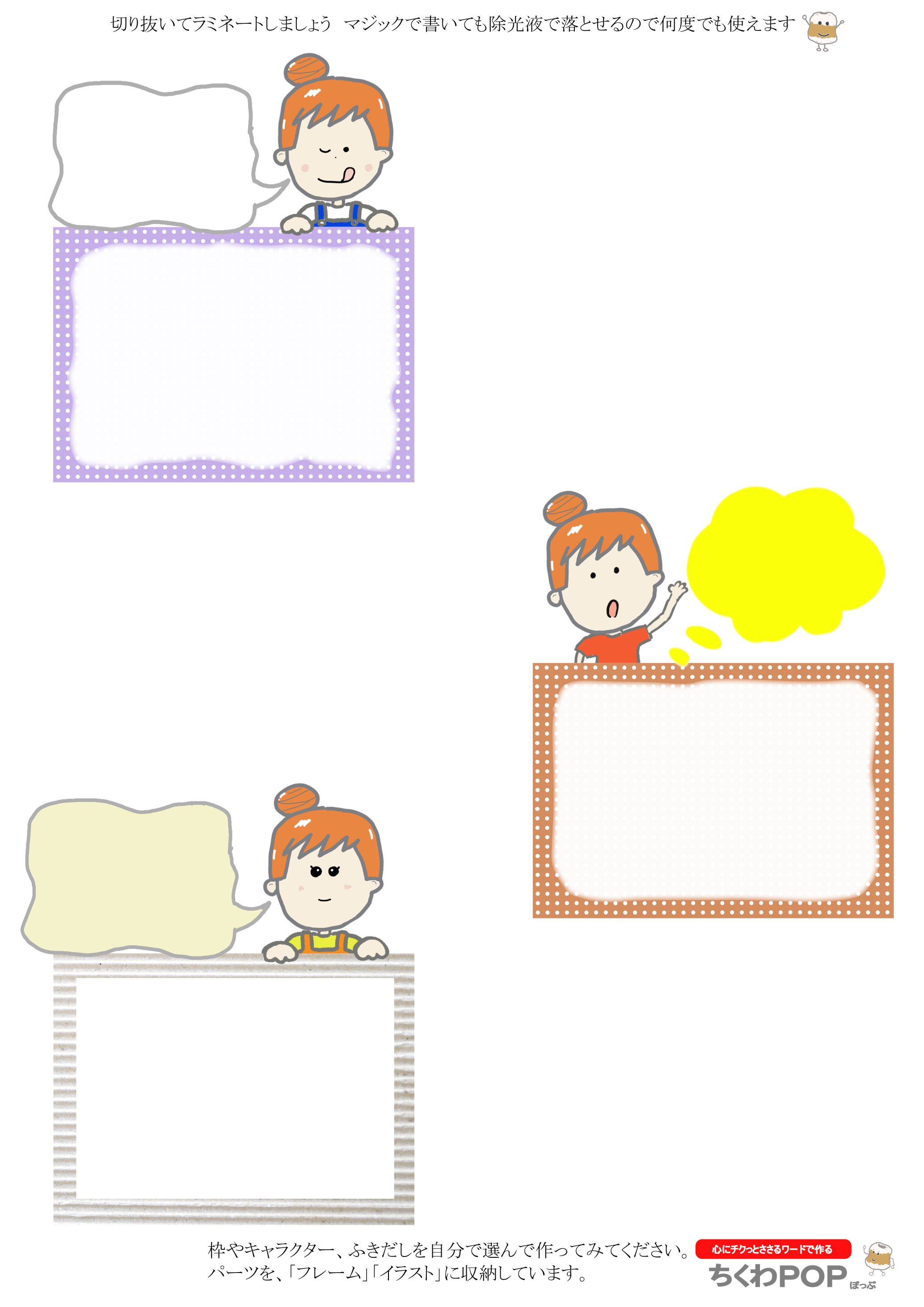 女の子のイラストと枠。A4印刷を想定しています。あまり小さくても大きくてもいけないので、使いやすい大きさにしています。他の画像と合成しやすいpngにしました。