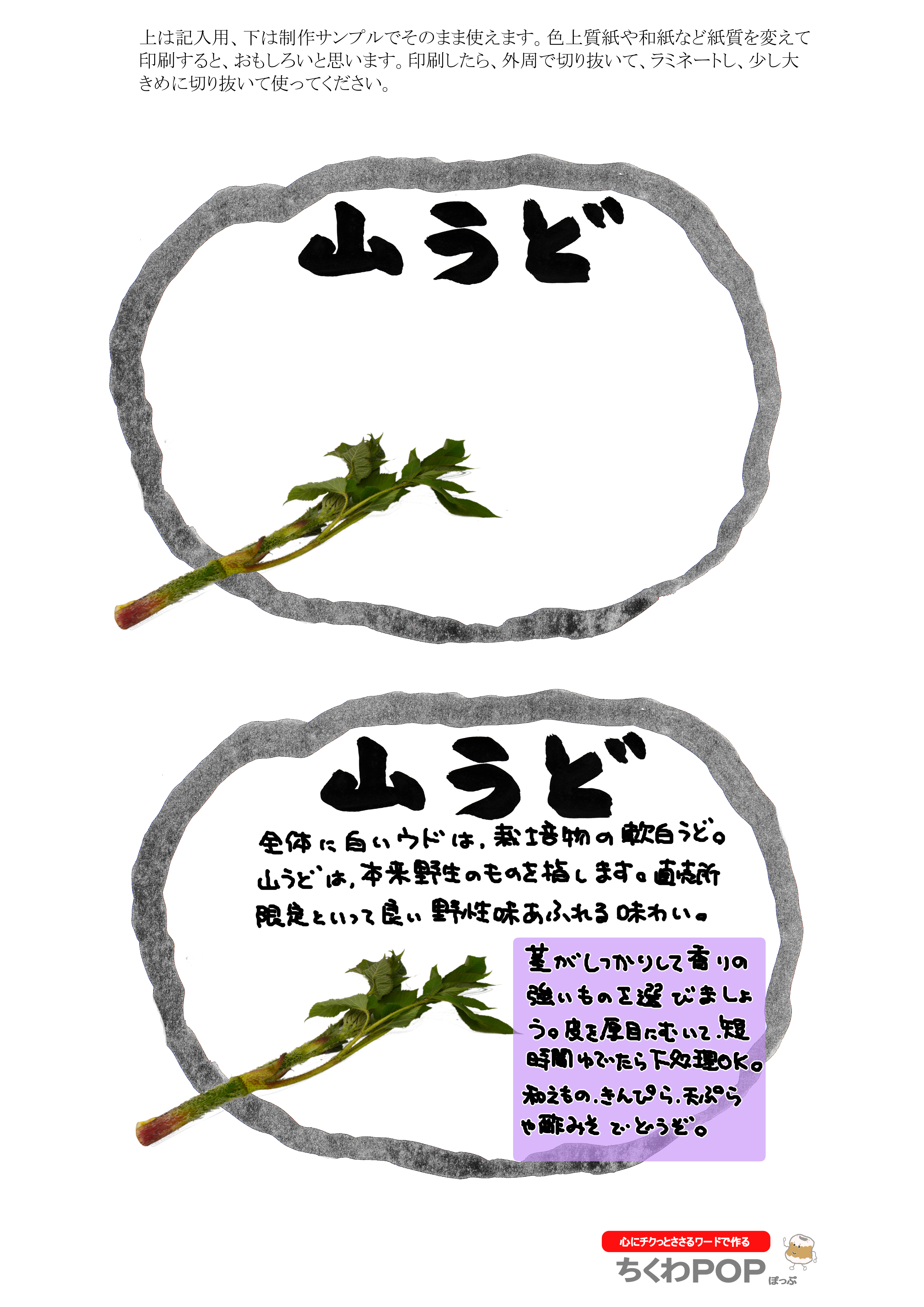 今日の山菜シリーズの差し替えポップです。
