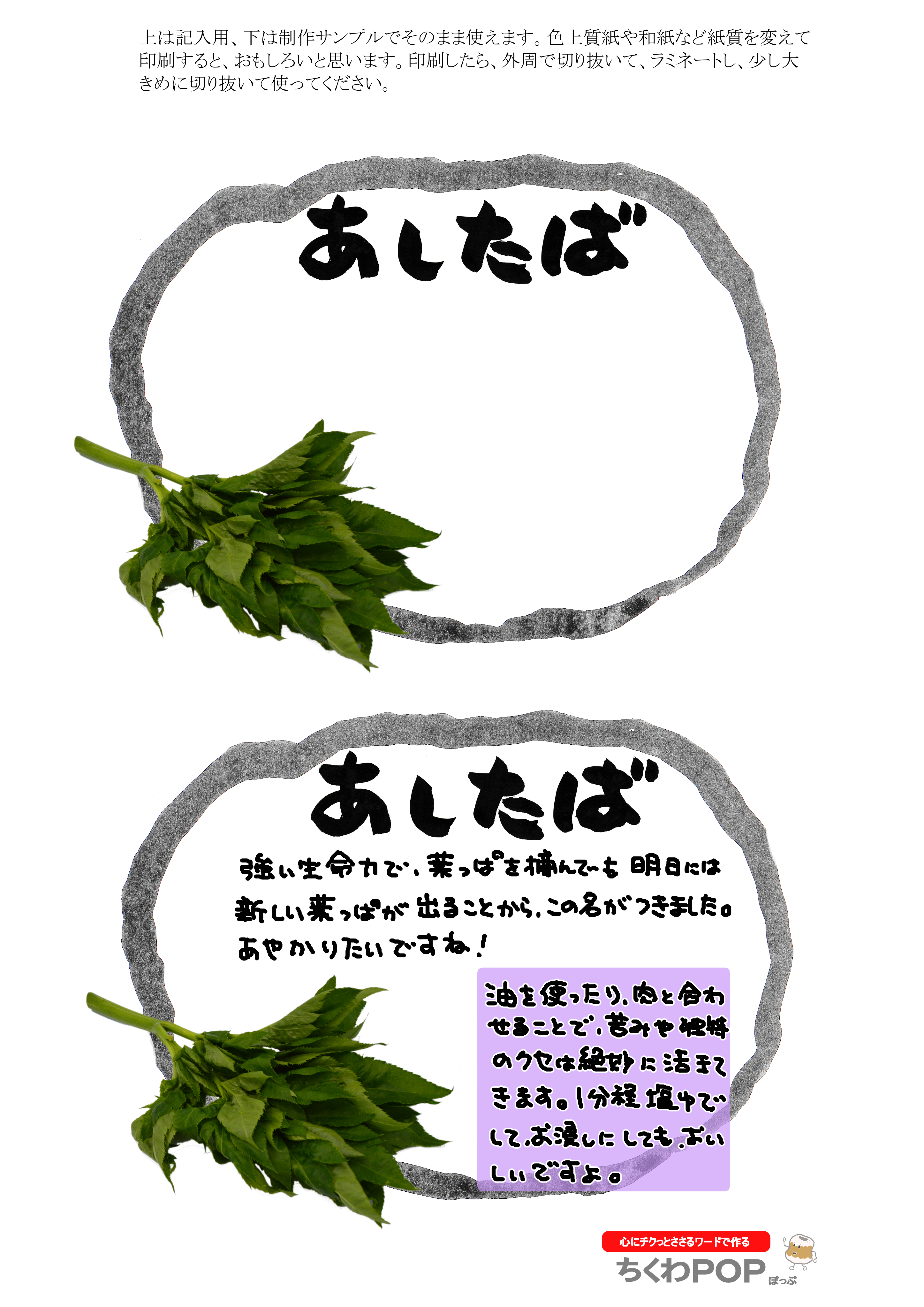 季節や日によって入れ替わる品種を掲示できないかと考え制作しました。オリジナルの掲示を作って下さい。