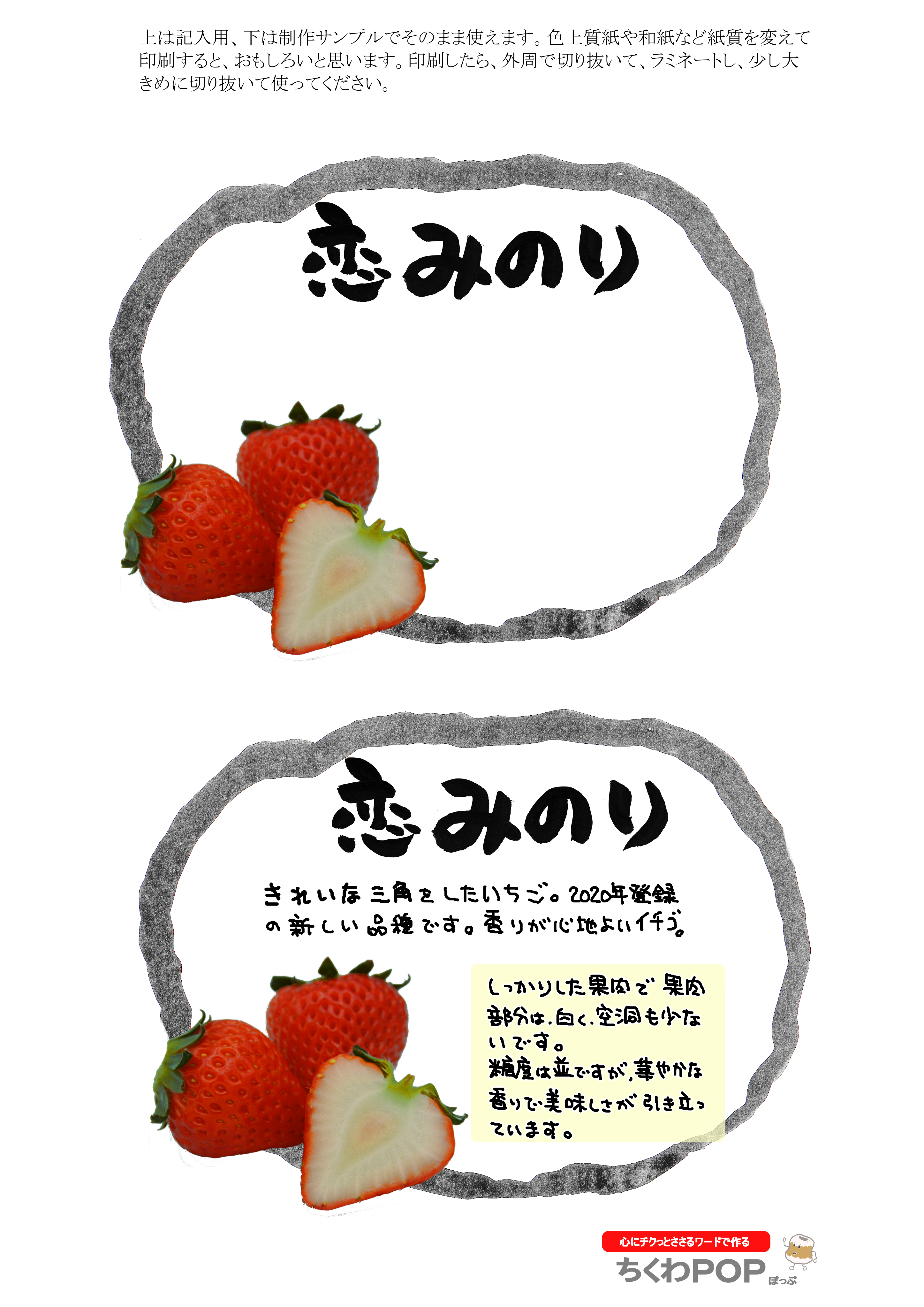 名前がいいですよね。今日のいちごシリーズの差し替えポップです。
