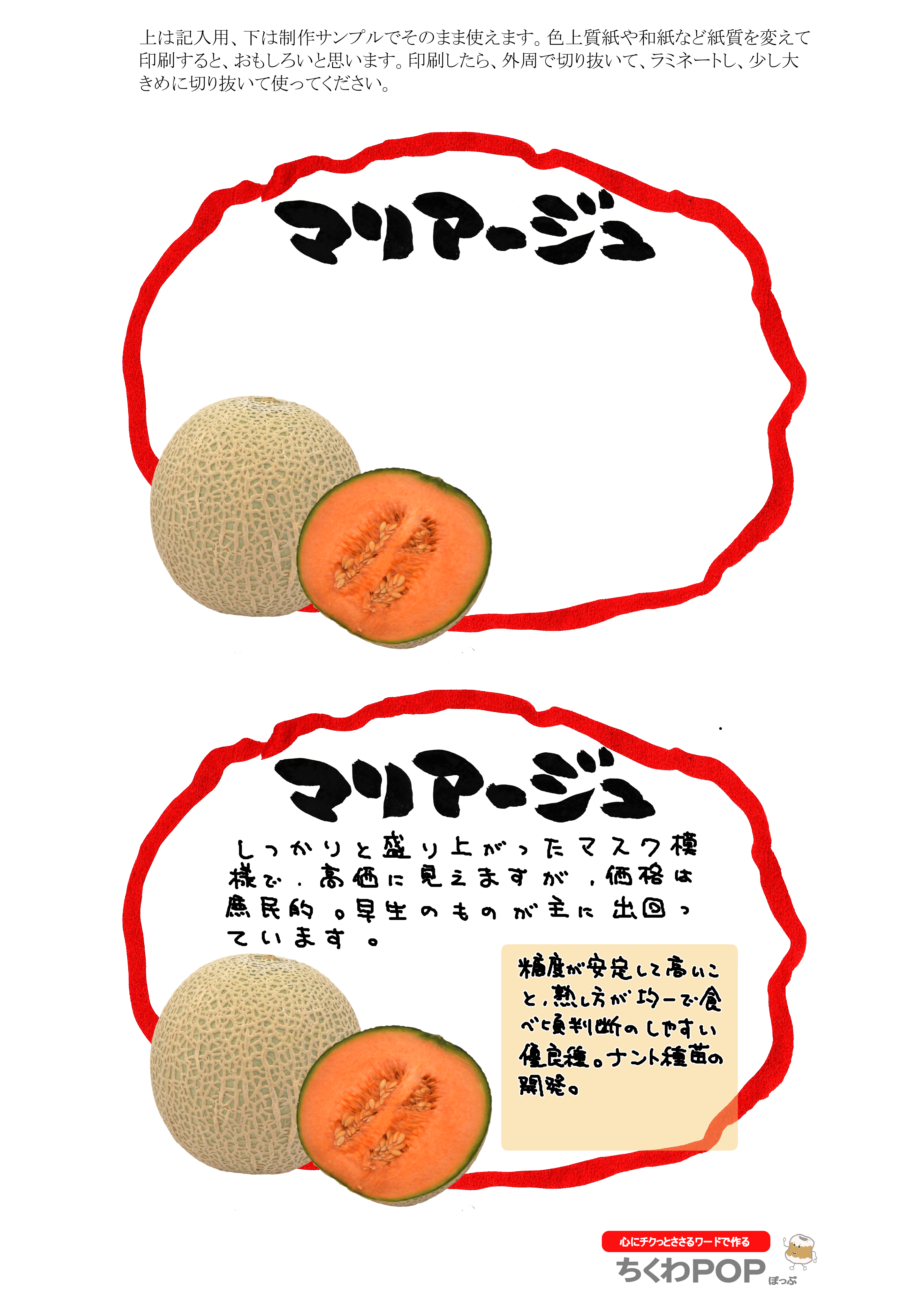 今日のメロンシリーズの差し替え型ポップです。