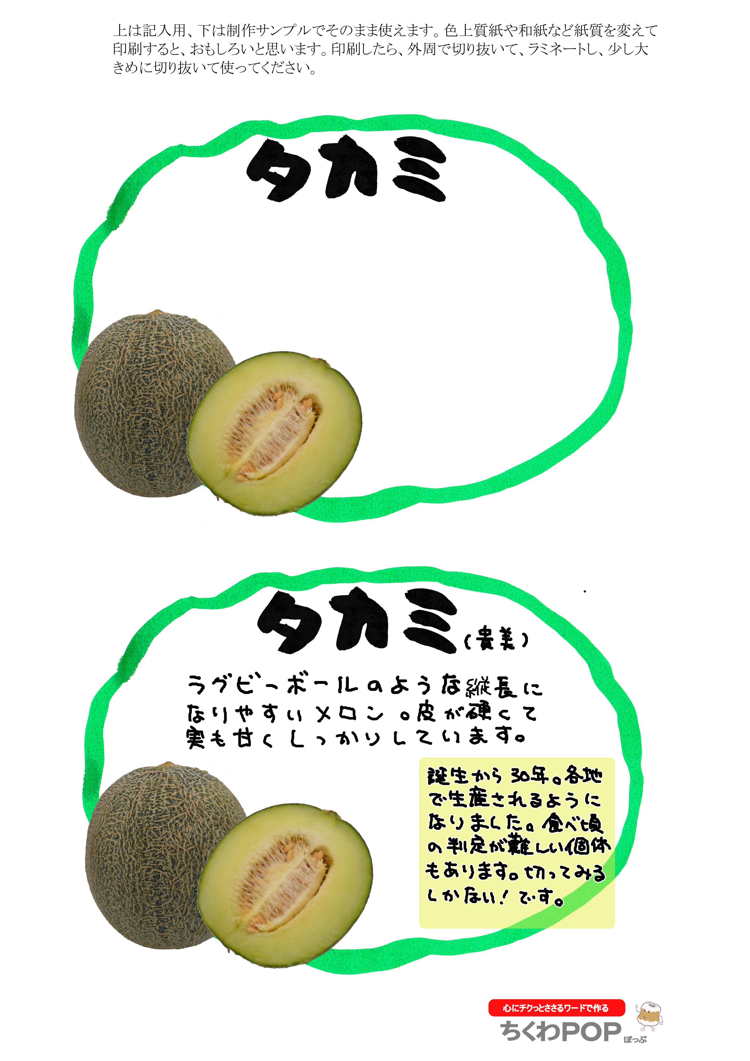 今日のメロンシリーズの差し替え型ポップです。