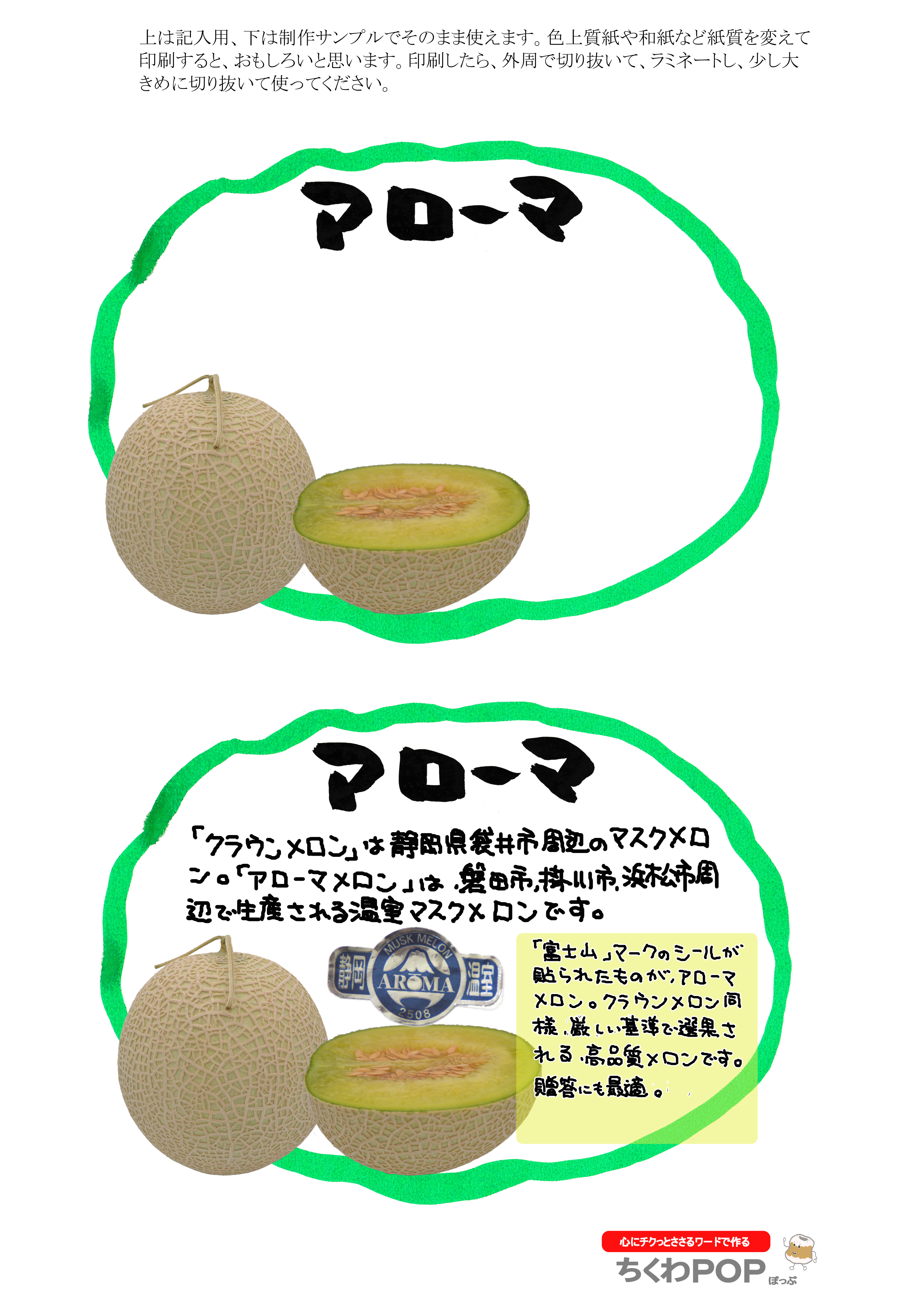 今日のメロンシリーズの差し替え型ポップです。