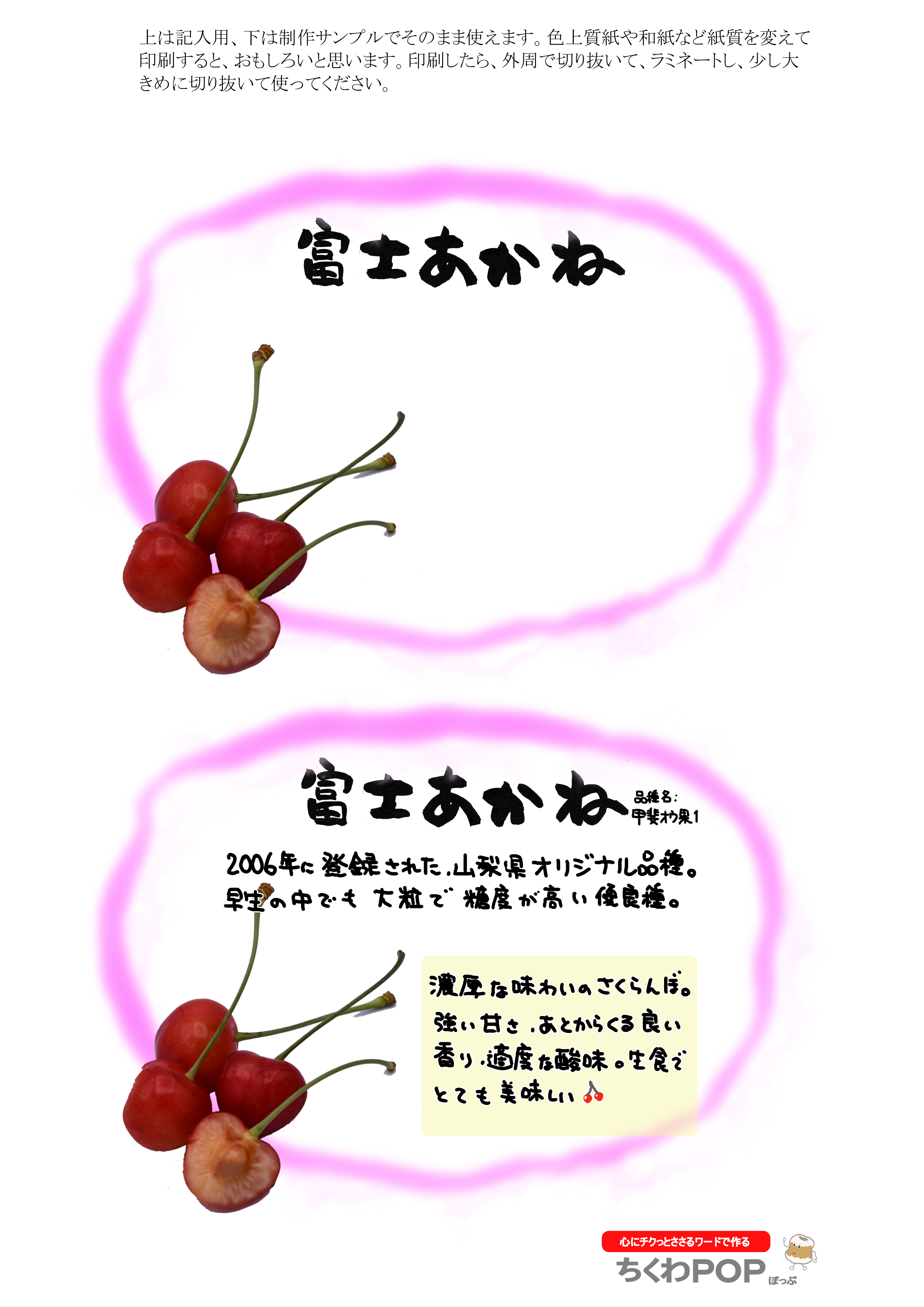 今日のさくらんぼシリーズの差し替え型ポップです。