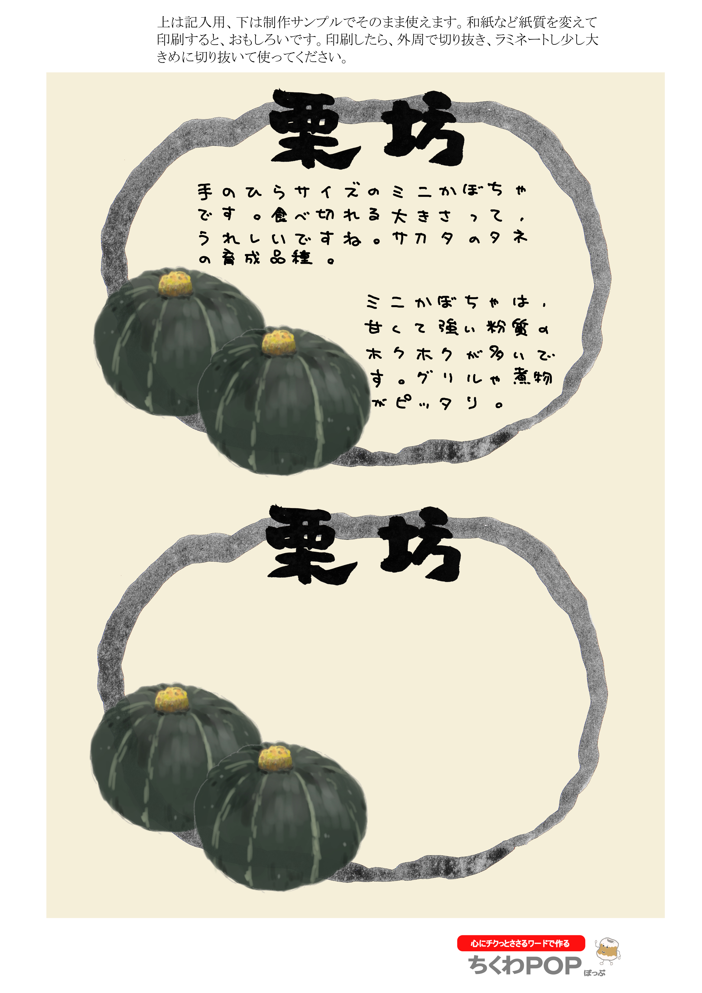 今日のかぼちゃシリーズの差し替え型ポップです。