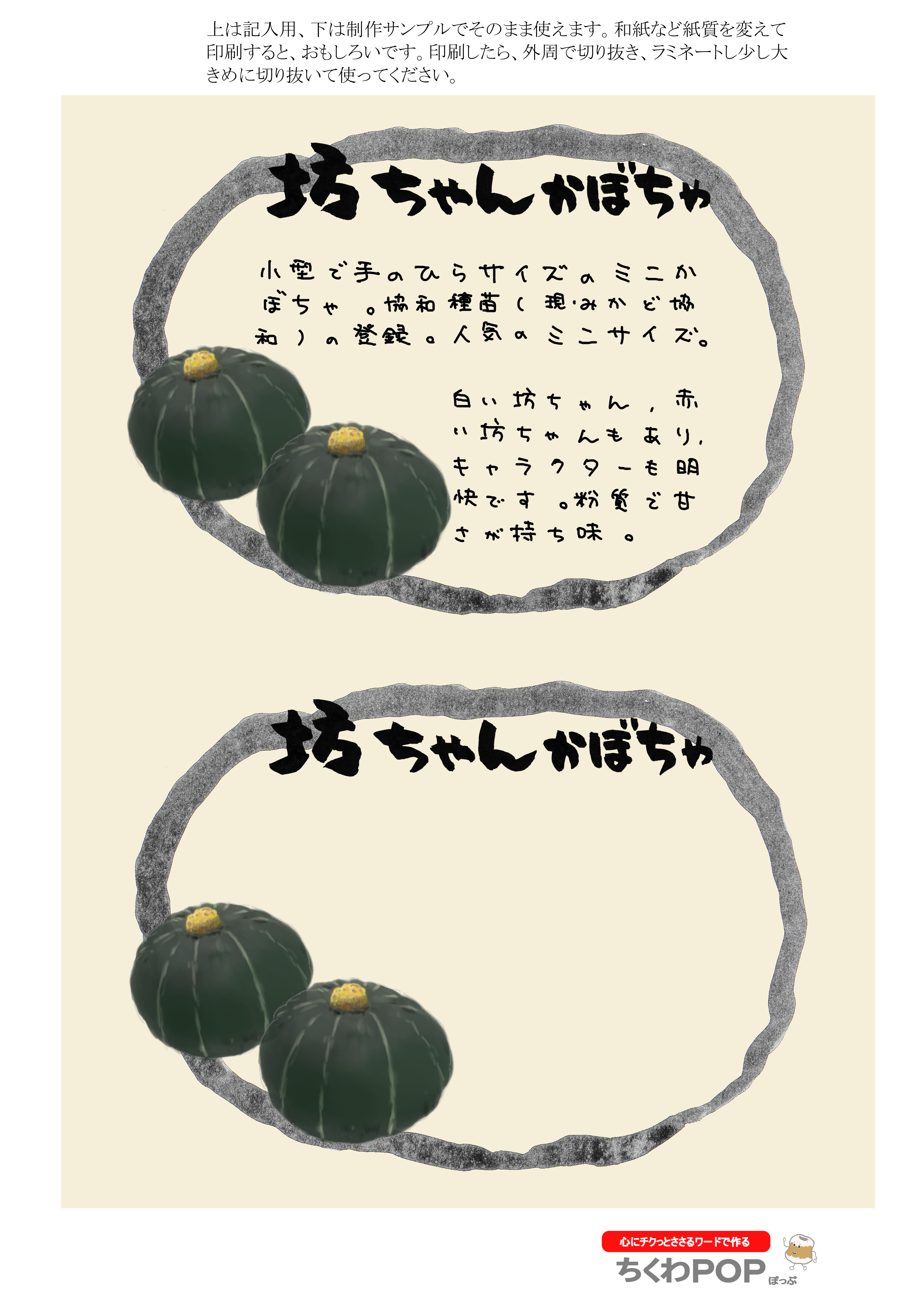 今日のかぼちゃシリーズの差し替え型ポップです。