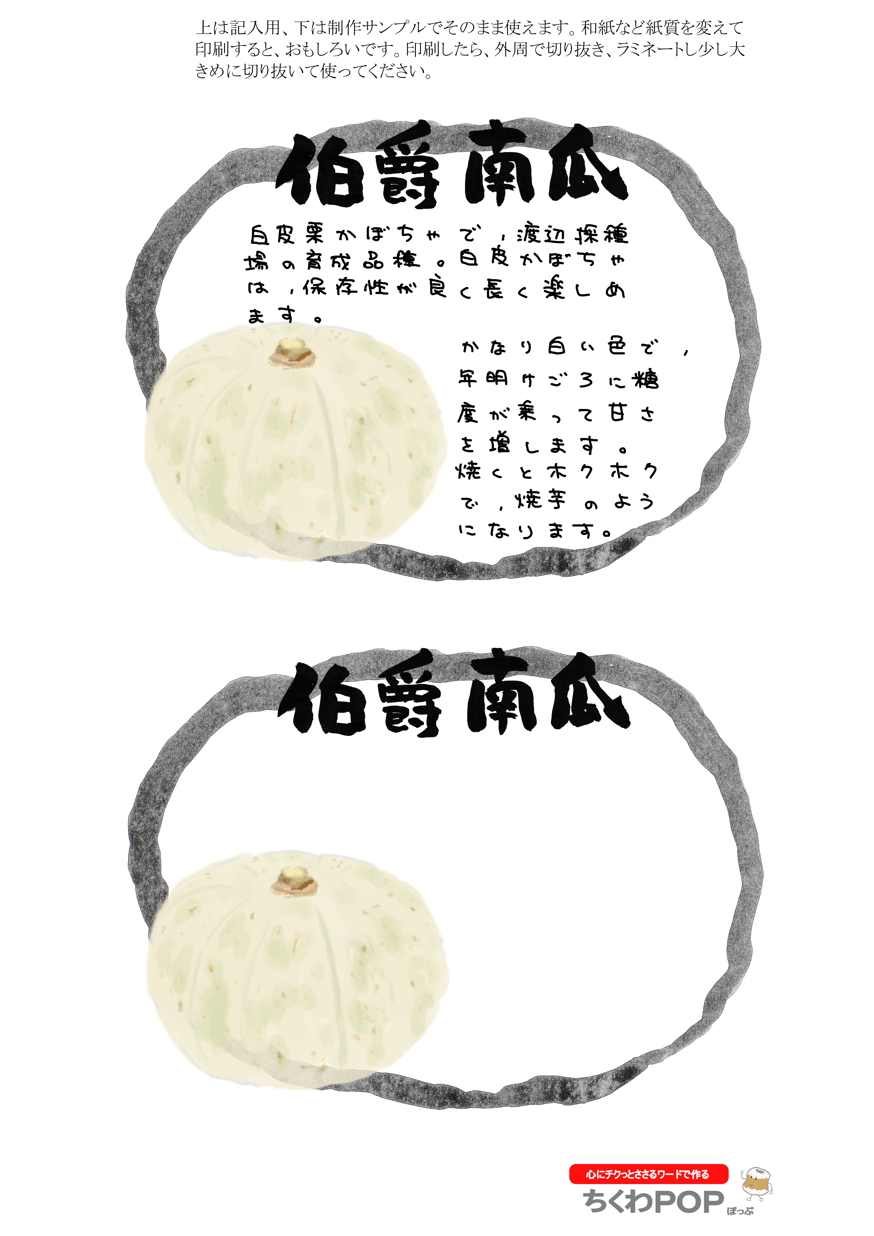 今日のかぼちゃシリーズの差し替え型ポップです。