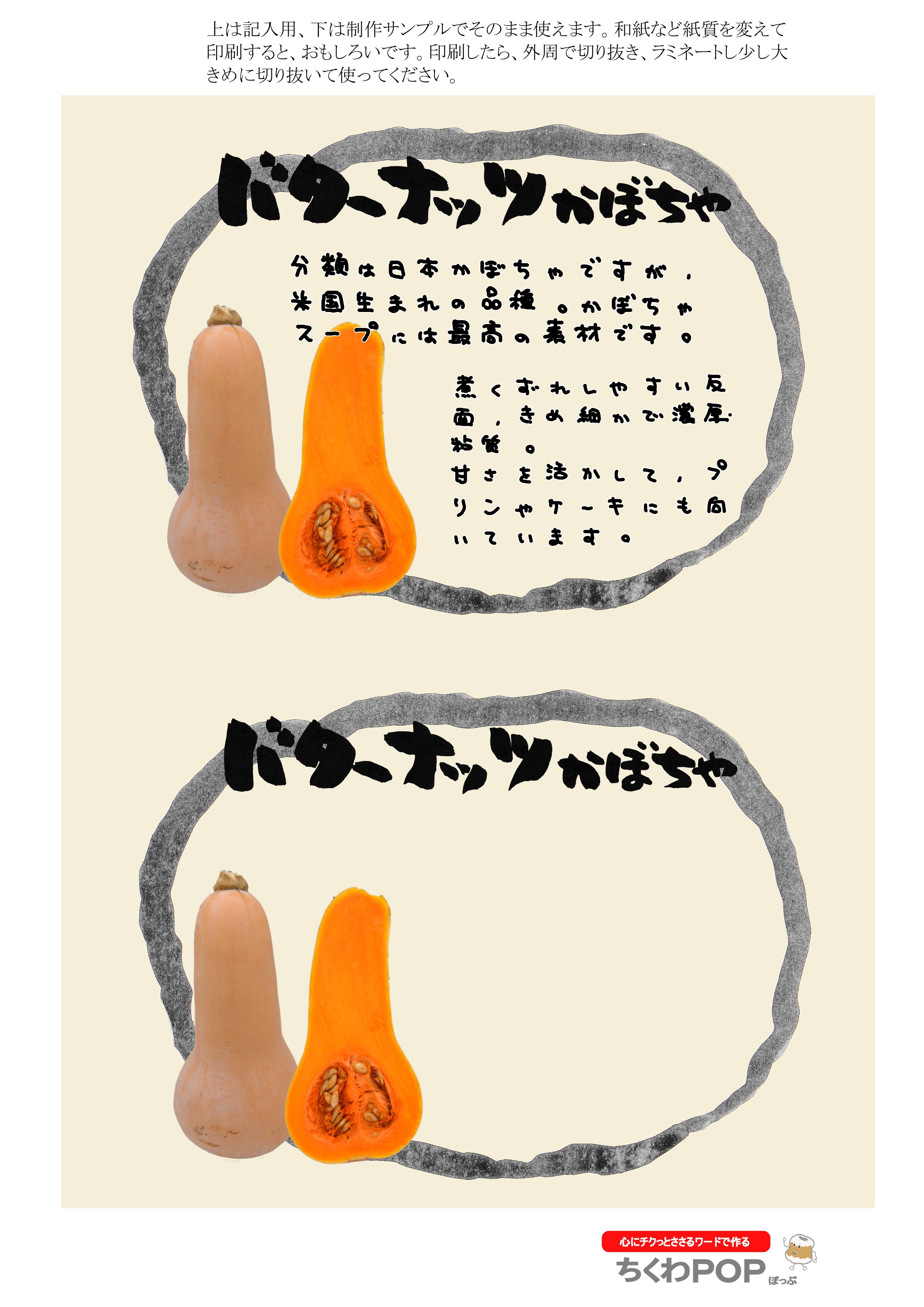 今日のかぼちゃシリーズの差し替え型ポップです。
