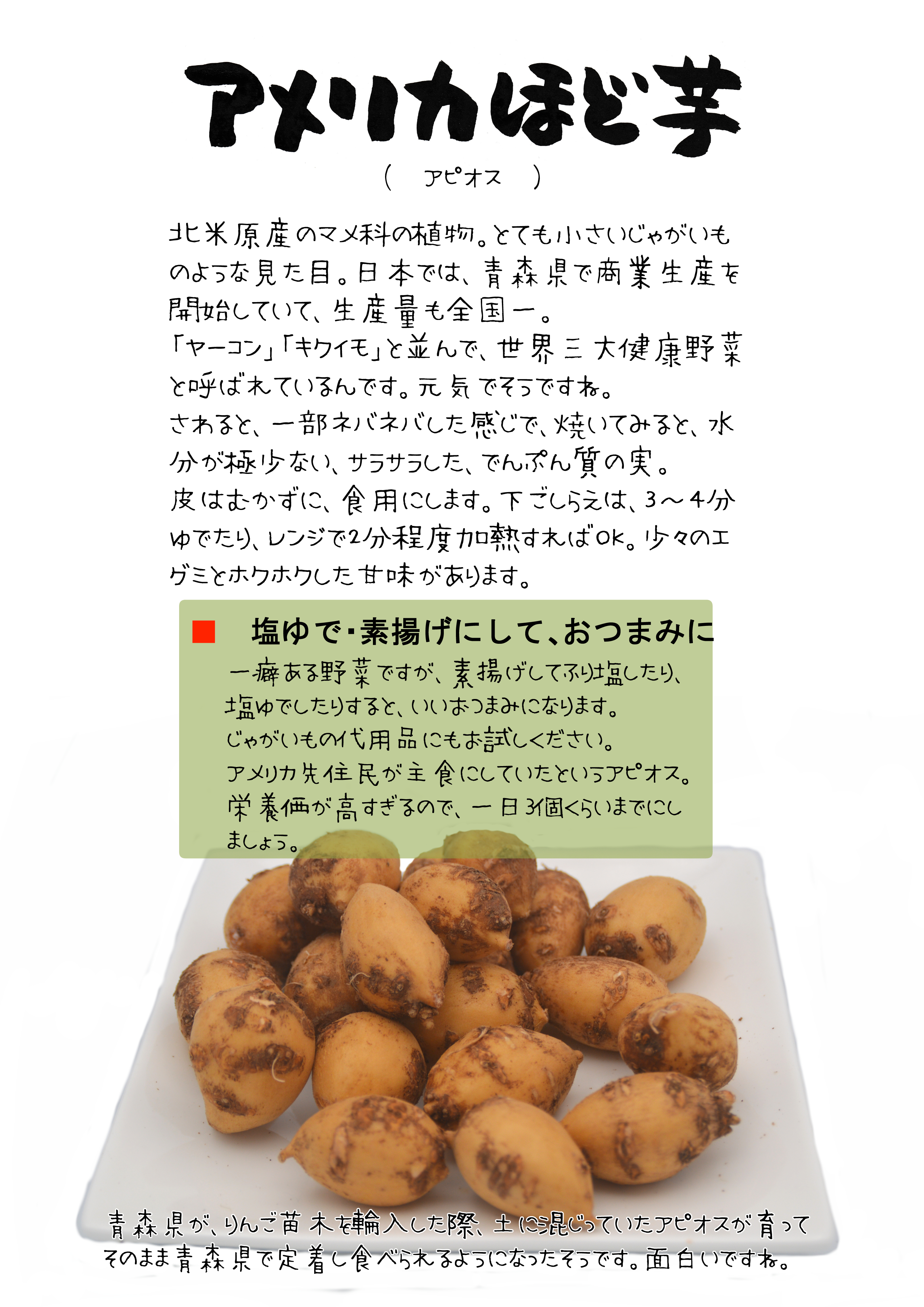 今でも、アメリカホドイモの主産地は、りんご大産地の青森県です。
