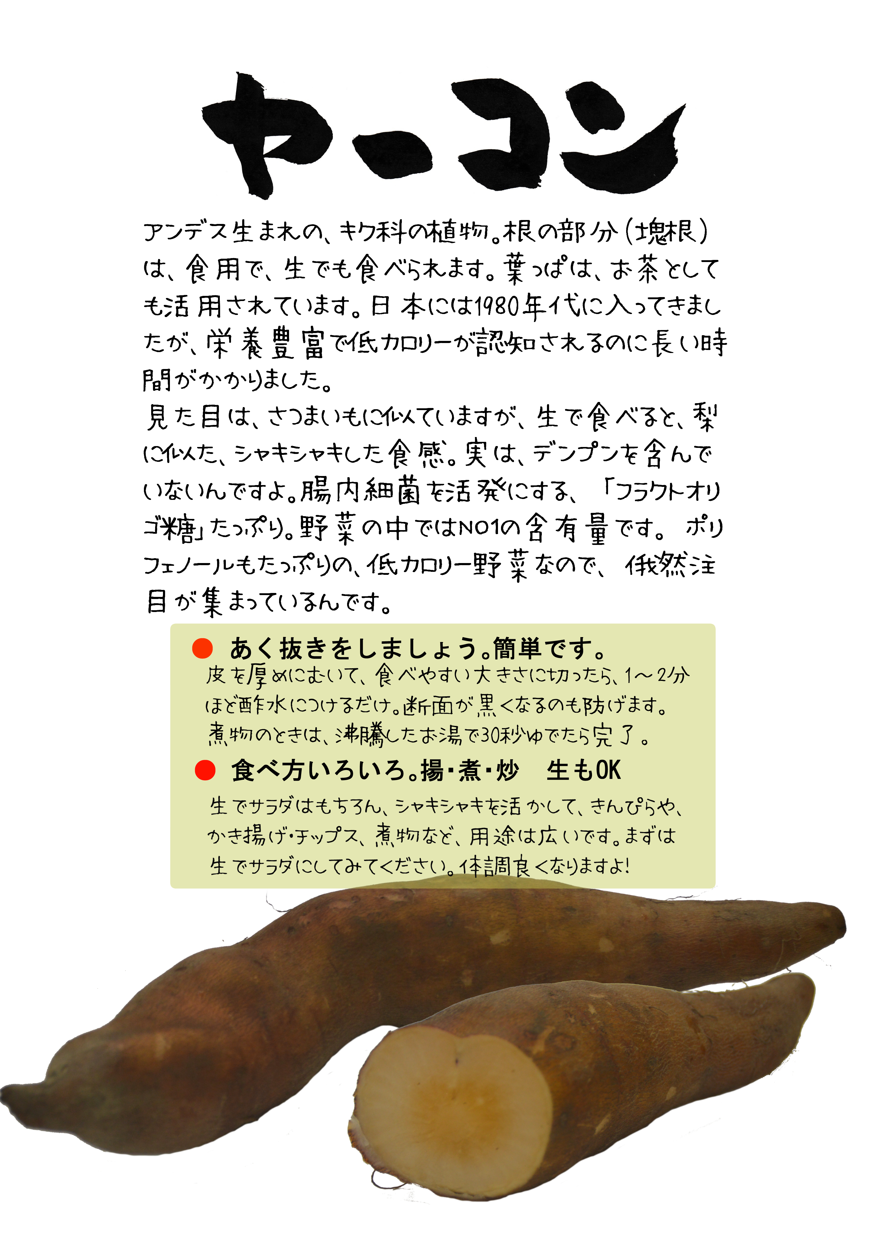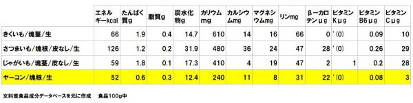 ヤーコンはじゃがいも並に低カロリーということが言えます。