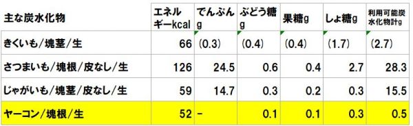 わかりやすい、芋類との比較。