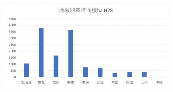 面白い点として、東海以西では、栽培面積が少ないです。