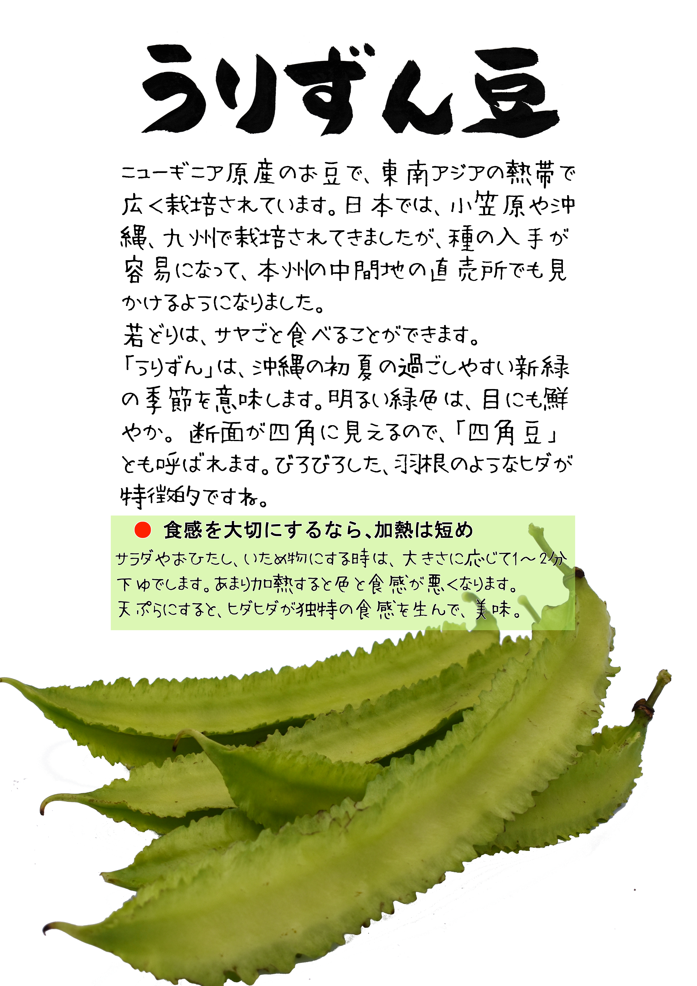 さわやかな新緑色の四角豆のイメージが「うりずん」なんですね。