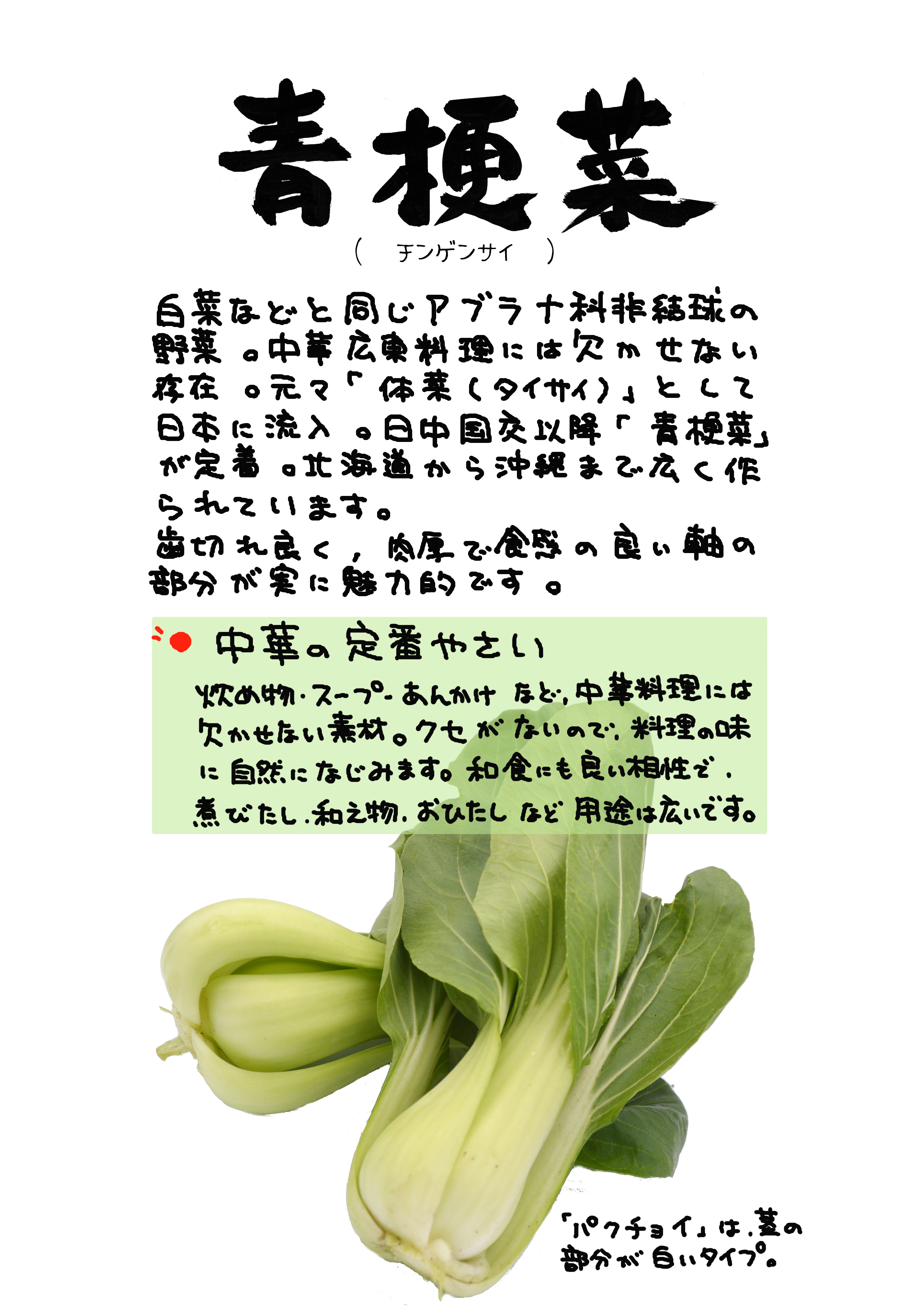 やさい葉物ちんげんさい青梗菜パクチョイチンゲンサイ