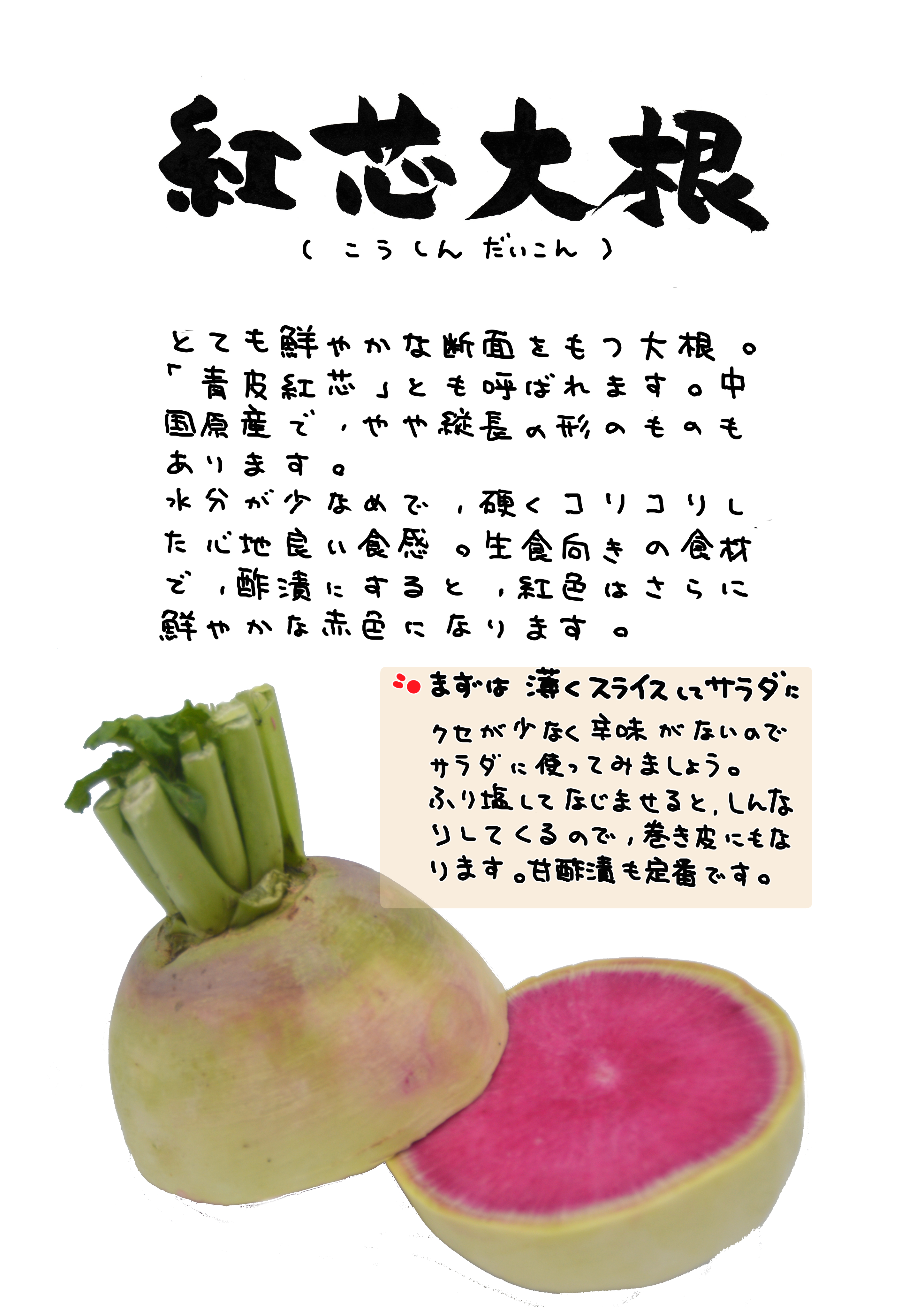 紅芯大根 こうしんだいこん|心にチクっとささるワードで作る「ちくわPOP(ちくわぽっぷ)」|農産物直売所やスーパーの青果売り場の活性化に!農に特化したPOPが無料!!