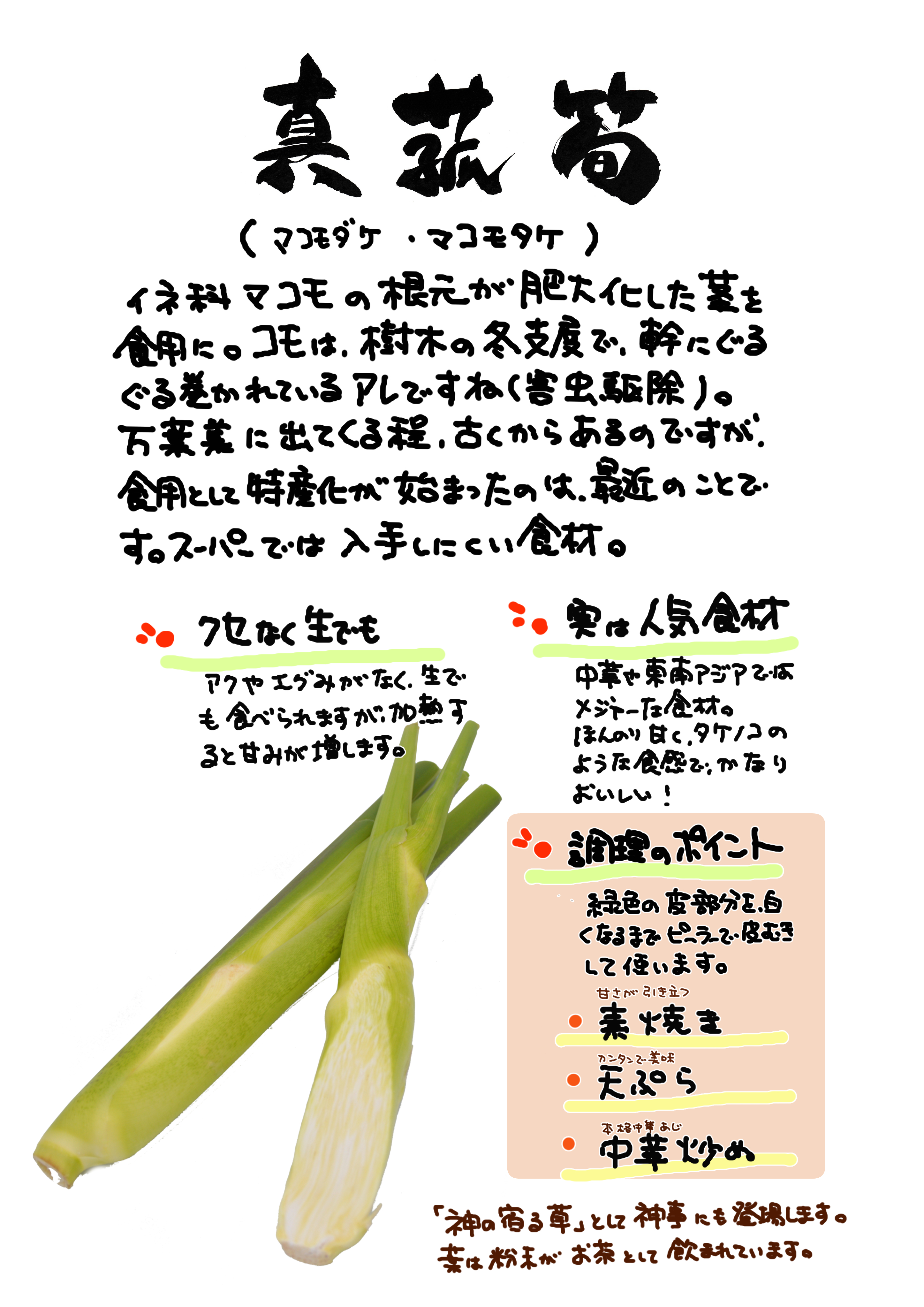 「マコモ」の根の部分が肥大化したものを、秋に収穫し食用にしています。
